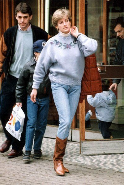 Визначною рисою стилю принцеси Діани були джинси з високою посадкою — як диктувала модна епоха. Королеву сердець настільки часто бачили в джинсах, що в декого її образ навіть асоціюється з ними. Найчастіше Діана заправляла джинси в ковбойки. Поєднувала вона їх із сорочками та лонгслівами, а наверх нерідко одягала структурований жакет.