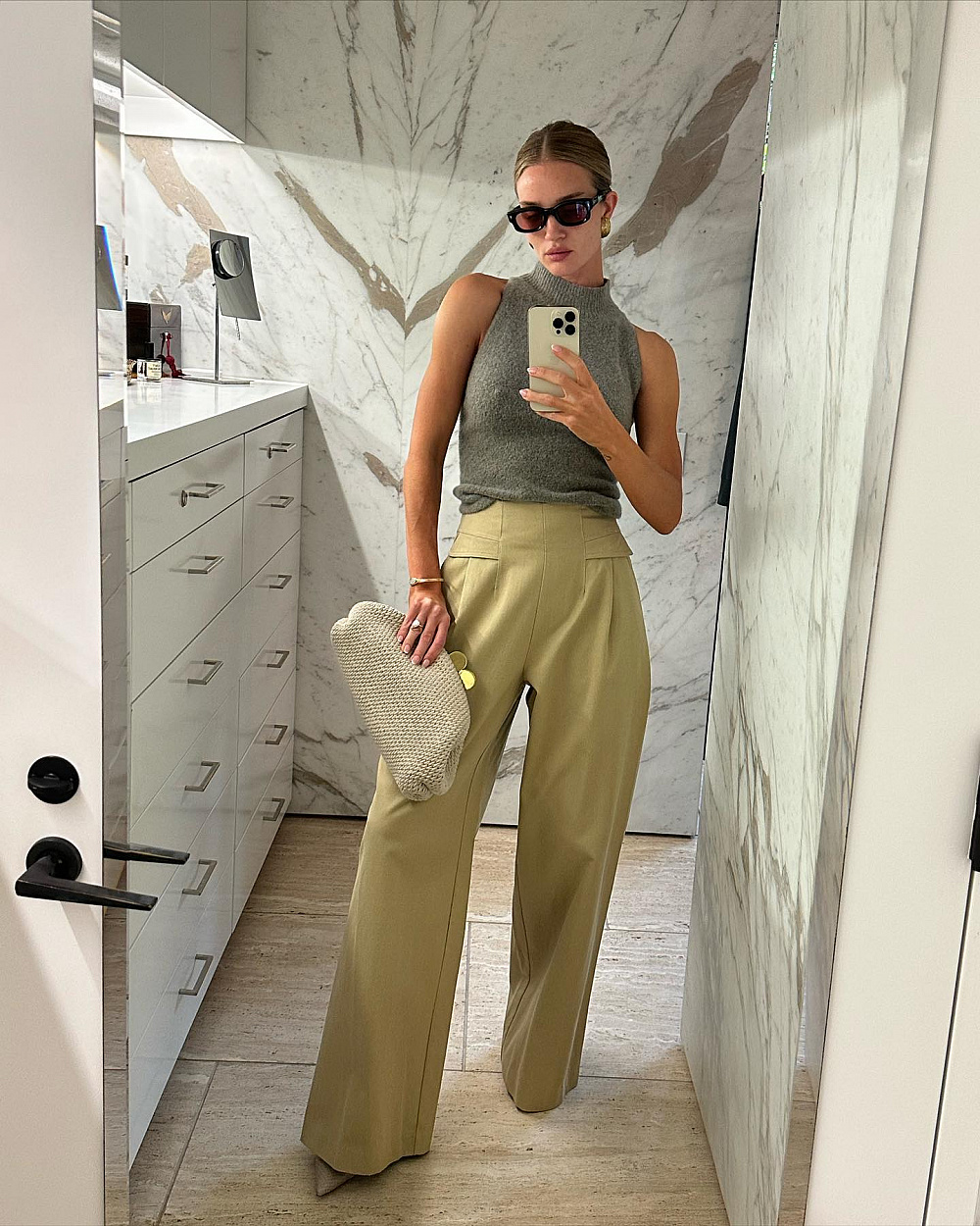Роль брюк у гардеробі Роузі складно переоцінити, адже одягає вона їх далеко не лише у парі з жакетом. У її шафі знайдуться штани на будь-який смак, однак найчастіше зірка обирає більш оверсайз моделі. Вони контрастують з обтислими топами та боді, що створює правильний силует і підкреслює пропорції фігури.