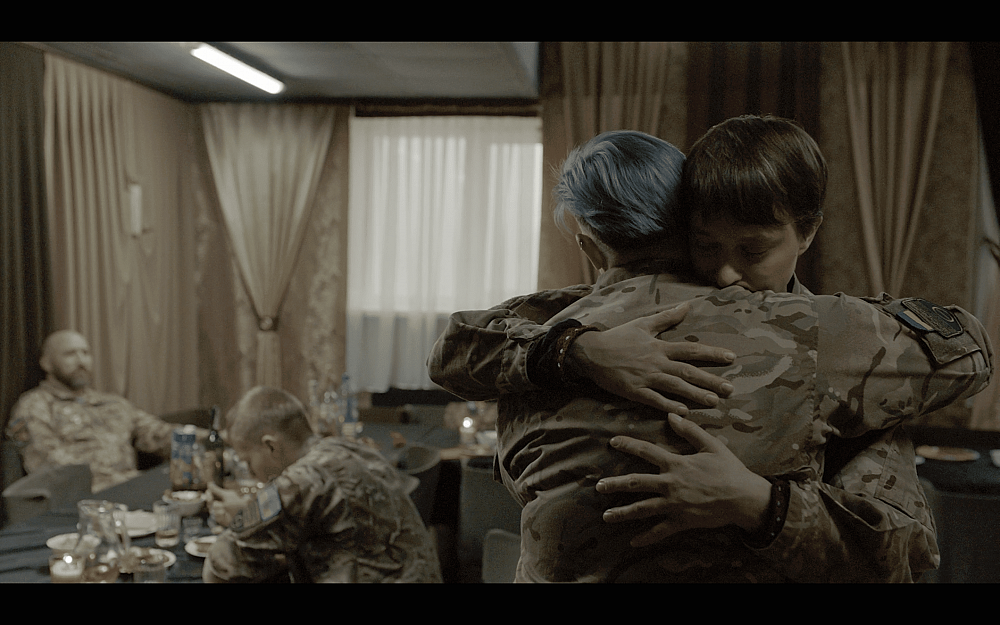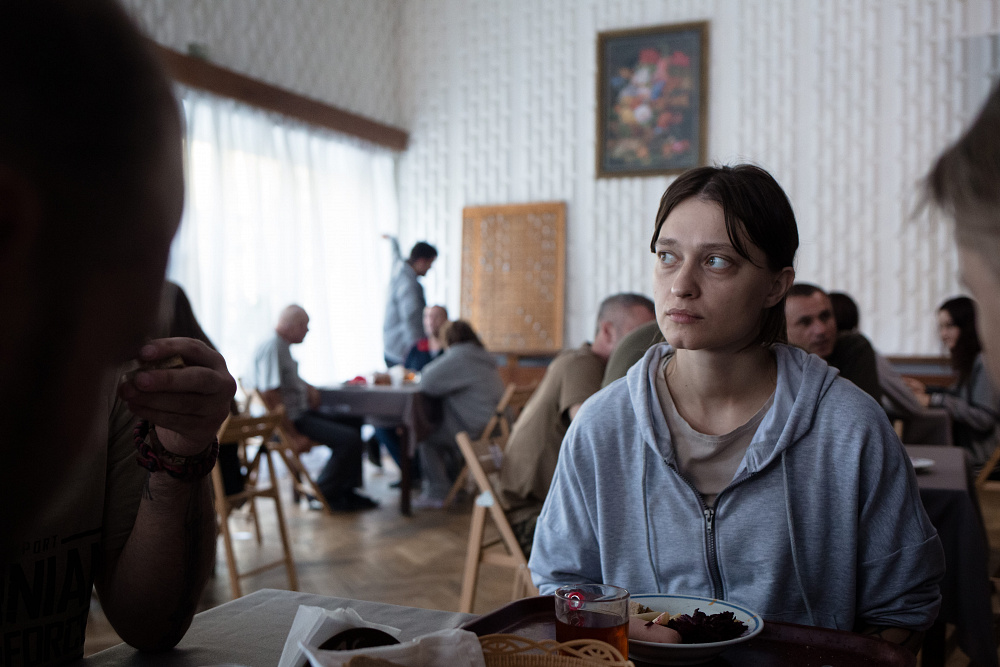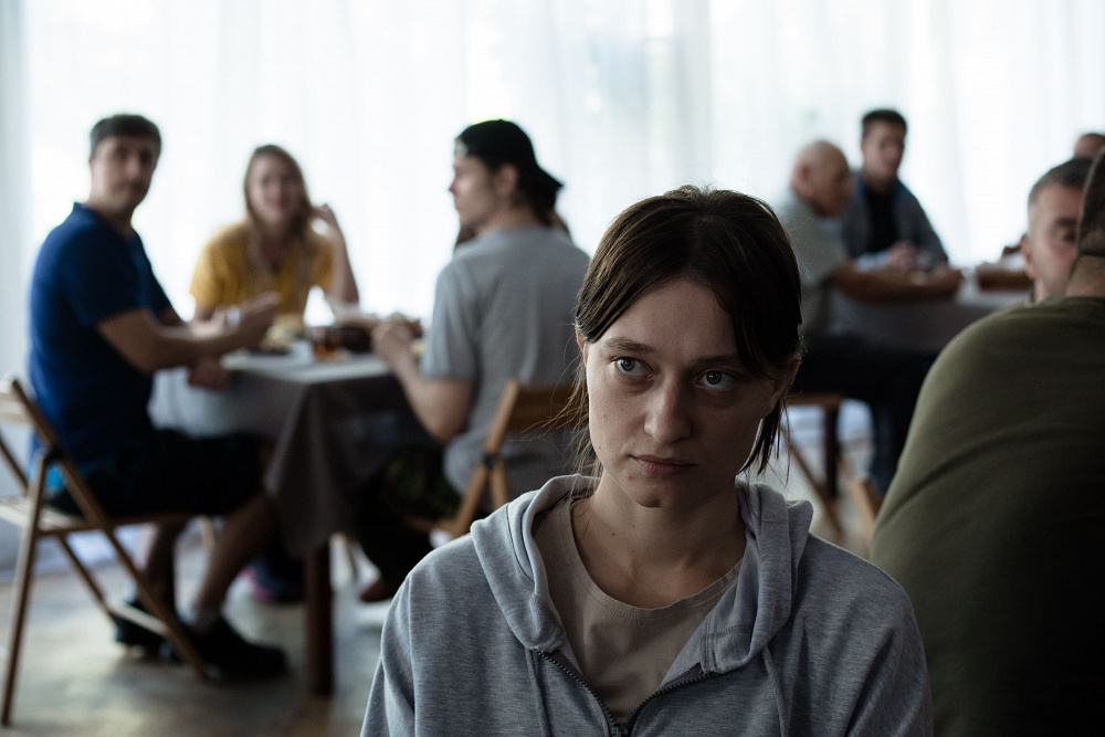 Найважча сцена — у їдальні. Ми знімали її у військовому шпиталі, за столом сиділи ветерани. Для мене було справжнім викликом грати при них військову. Двоє з них мали поранення, ще один був у полоні — вони мали травмовану історію, що накладало на мене більше відповідальності.