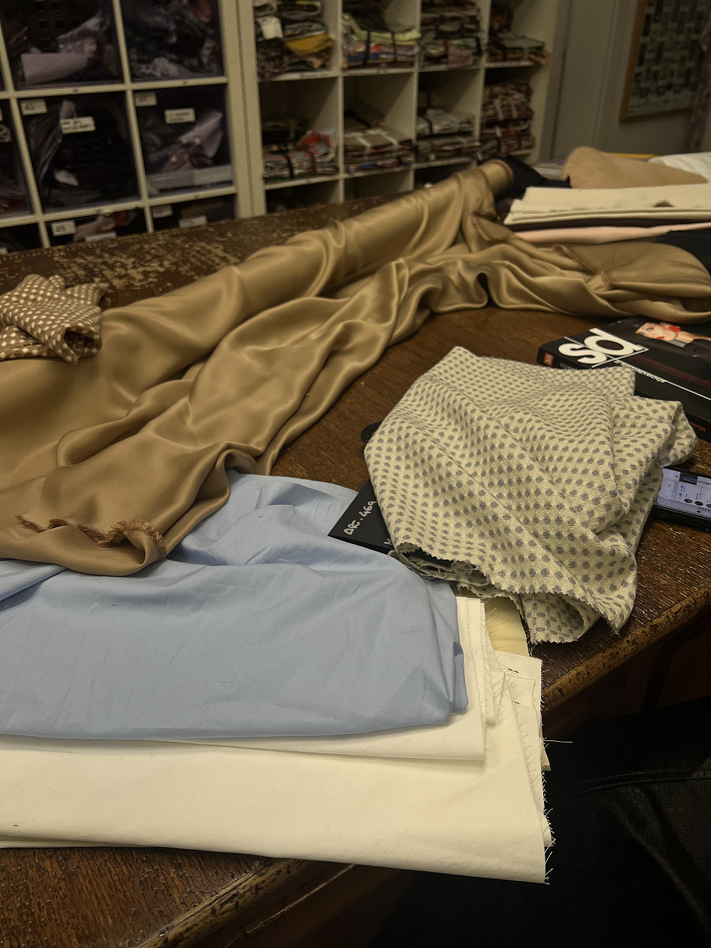 Два рази в сезон ми літаємо в Італію. Вже маємо перевірених постачальників стокових тканин преміальної якості, також працюємо з декількома фабриками, де беремо регулярні позиції. Щоразу намагаємося потрапити хоча б в одне нове місце. Всі тканини тестуємо, обговорюємо та розбираємо сотні зразків, перед тим як прийняти рішення. Додому повертаємося, як правило, вже з чітким баченням майбутньої колекції.