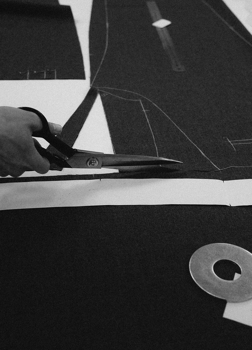 Віта: На відміну від дизайнерів, які працюють від ескізу до реалізації, ми працюємо від першого дотику до тканини до виношування ідеї та її втілення. Коли ти бачиш багатство фактури, відчуваєш тканину на дотик, у голові зароджується образ та силует майбутнього виробу. Коли макет виробу готовий, ми зазвичай міряємо його на себе, й тут відбувається найцікавіше — моделювання. Зрізаємо зайве, крутимо тканину, робимо розрізи чи нашаровуємо, додаємо деталі чи змінюємо форму до тих пір, поки нам обом не «клікне». Ми так називаємо мить ейфорії, коли розуміємо, що це воно — ідеальне, таке просте й водночас настільки складне. У роботі дизайнера це один з найбільш яскравих моментів творчості.