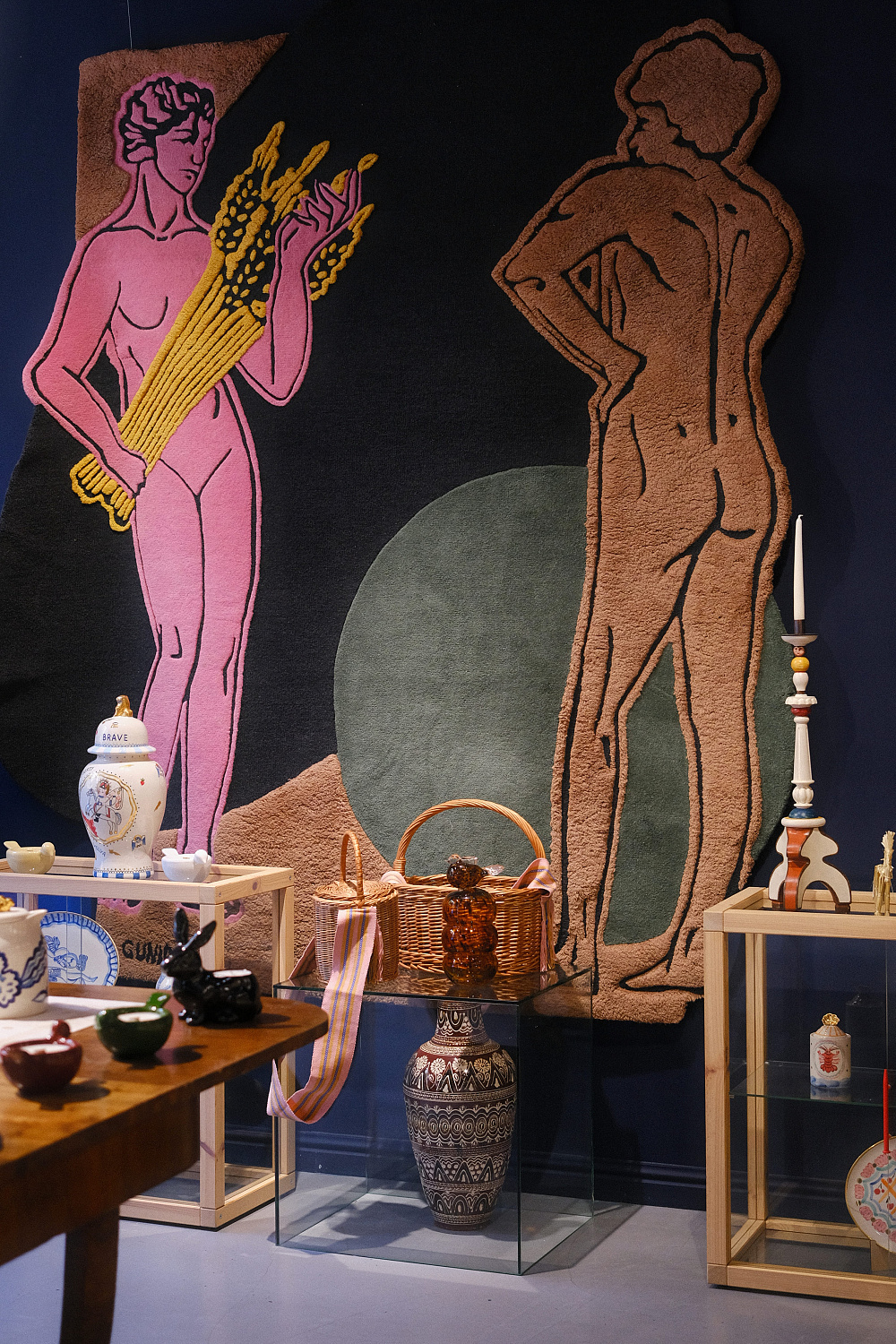 М.: Там можна побачити різні історичні знахідки: керамічні вироби, фотографії рушників, вишивок, технології. Фотографії з музеїв, наші етнографічні самостійні пошуки, які ми проводили, щоб знайти цікаві дизайнерські рішення.