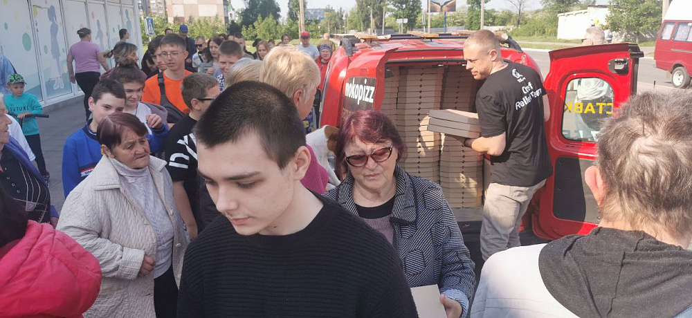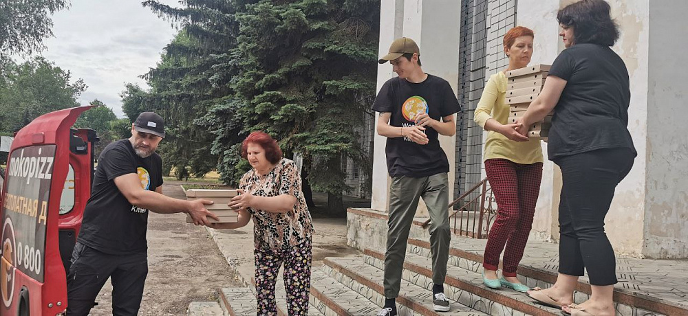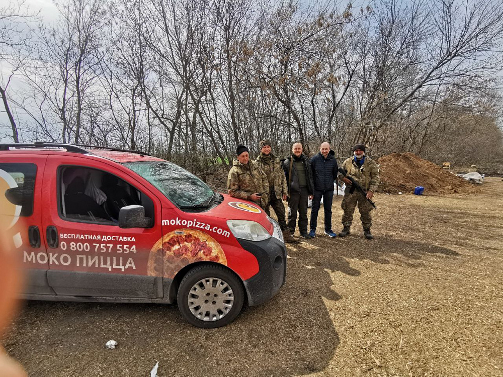 У Маріуполі події розвивалися досить швидко. Ще пару днів після 24 лютого ми працювали, але місто бомбили з усіх боків, і воно час від часу залишалося без світла. Люди, які ховалися в бомбосховищах, хотіли їсти й замовляли туди піцу. Оскільки значна частина команди не вийшла на роботу, наша керівниця Алла сама розвозила замовлення по квартирах і підвалах. Близько місяця з Маріуполя виїхати було майже неможливо, тому Алла забрала до себе двох наших працівників, і вони в холодній квартирі при мінусовій температурі, без шибок у вікнах, куталися в ковдри та чекали на зелений коридор. Зрештою їм вдалося залишити місто. В той момент я був у Покровську і намагався швидко думати, що робити далі. Певний час ми возили піцу бійцям у шпиталь, але згодом прийняли рішення евакуювати піцерії з Покровська до Дніпра. Це був склад неподалік заводу — єдине місце за прийнятною для нас ціною. І саме перед тим, як ми мали вивозити обладнання з Покровська, нам пощастило укласти договір із World Central Kitchen. Завдяки їхньому фінансуванню ми щодня готували до півтори тисячі піц і возили їх до прифронтових міст. Також у Покровську команда MOKO разом з іншими небайдужими людьми організувала гуманітарну їдальню, де безкоштовно щодня годує приблизно 180 переселенців і всіх, хто цього потребує. Майже пів року місто було без водопостачання, тому певний час ми двічі-тричі на день возили до піцерії воду, а потім пробили поруч із закладом свердловину, купили діжку та помпу.