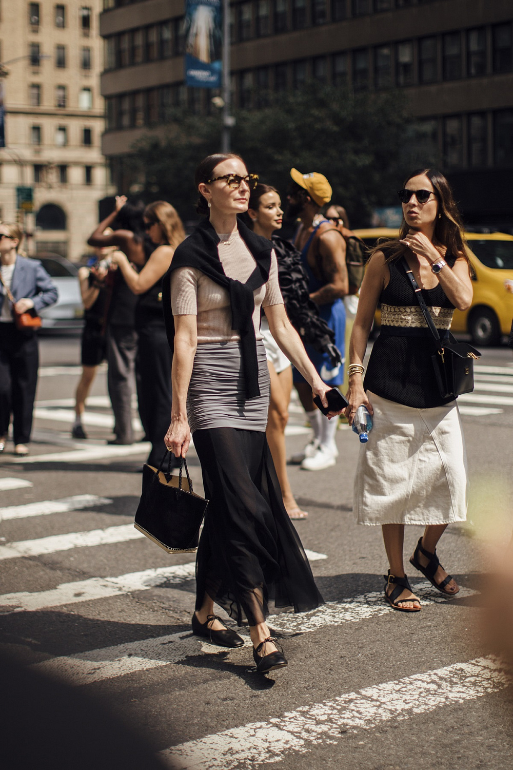 Втім, як це заведено під час Тижнів моди по всьому світу, в цей час увага модників прикута не лише до того, що відбувається на подіумі та в перших рядах на показах, а й до образів гостей модного дійства. Вулиці Нью-Йорка у ці дні стали місцем концентрації головних модних трендів сезону. Діловий стиль, спідниці максі, прозорі тканини, звабливі топи й корсети, шкіра, светри, недбало накинуті на плечі, — всі ці й не тільки тенденції варто запозичити у нью-йоркських модників для нового сезону.