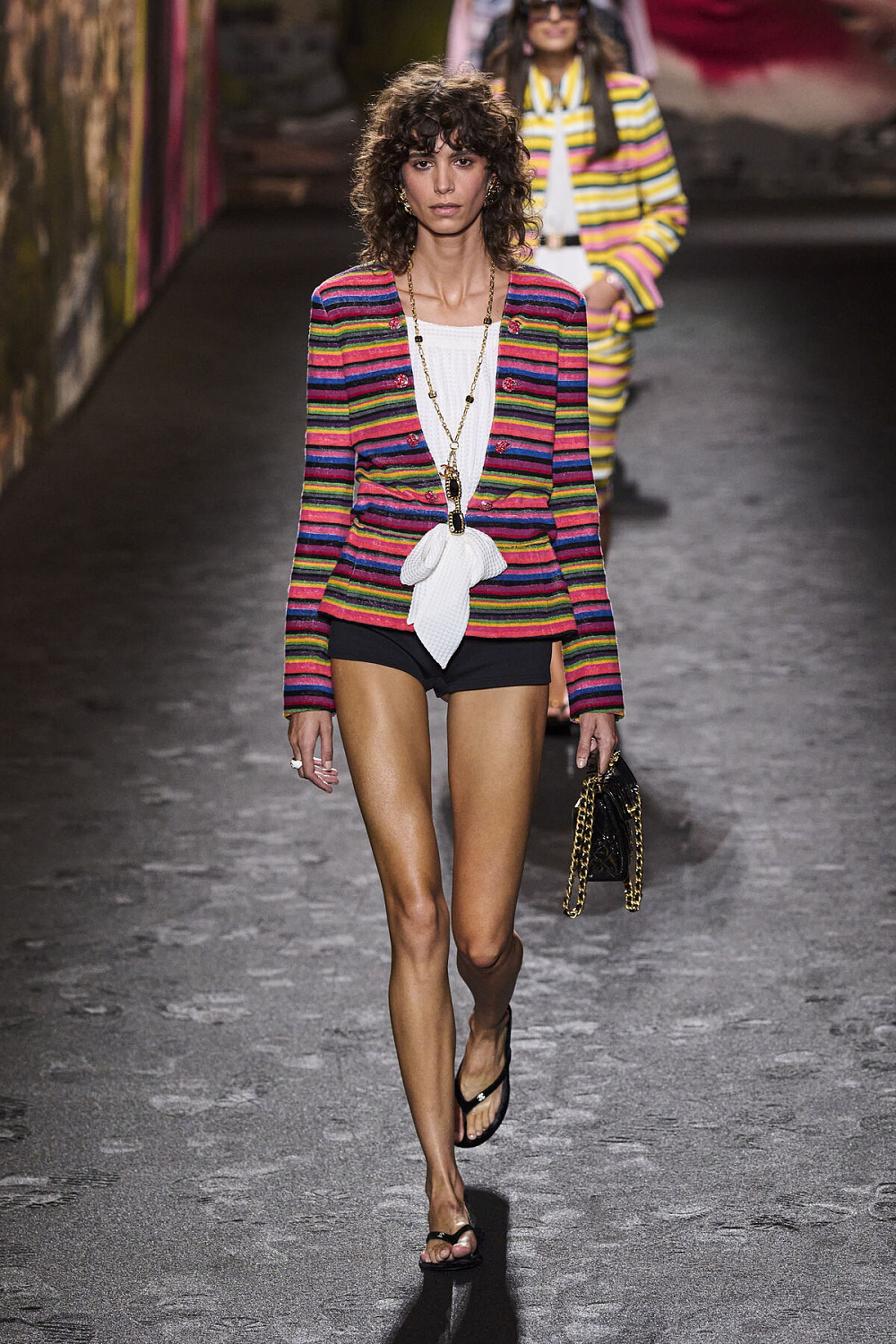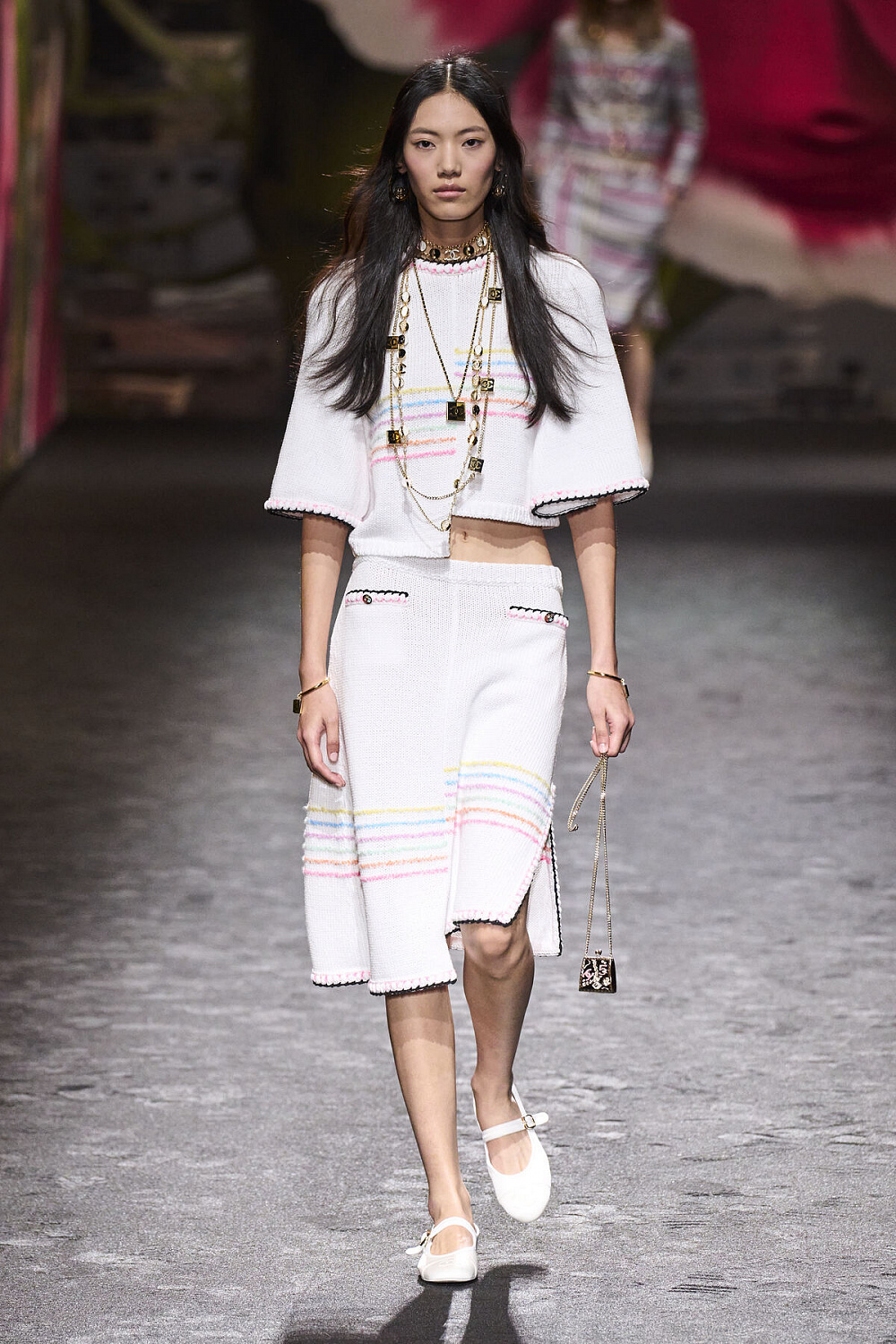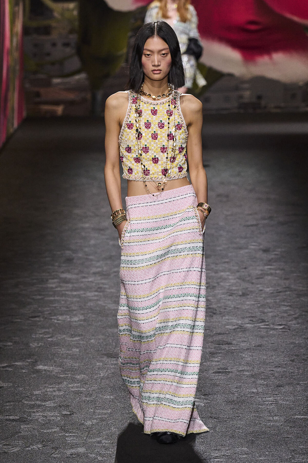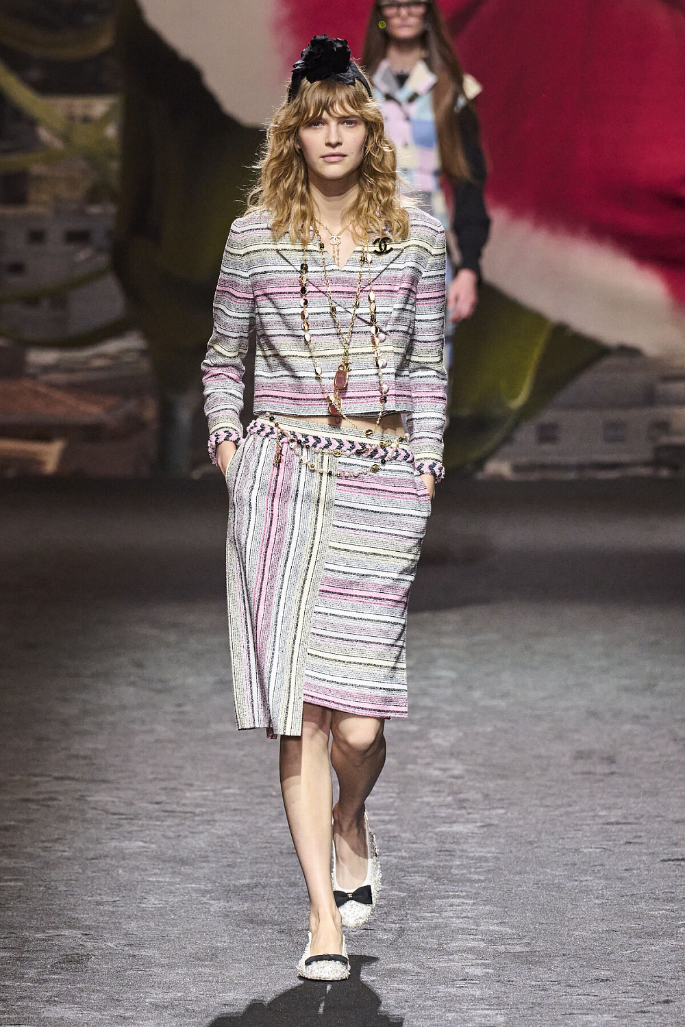 Натхнена сонячними садами вілли Noailles, побудованої архітектором Робертом Малле-Стівенсом для меценатів Шарля і Марі-Лор де Ноай між 1923 і 1927 роками, колекція Chanel весна-літо — 2024 стала втіленням неймовірної французької природи, соковитих кольорів, літа та свободи. А модерністська архітектура вілли надихнула Віар на яскраві геометричні візерунки, асиметрію, печворк, а також смужки та клітинки на будь-який смак.
