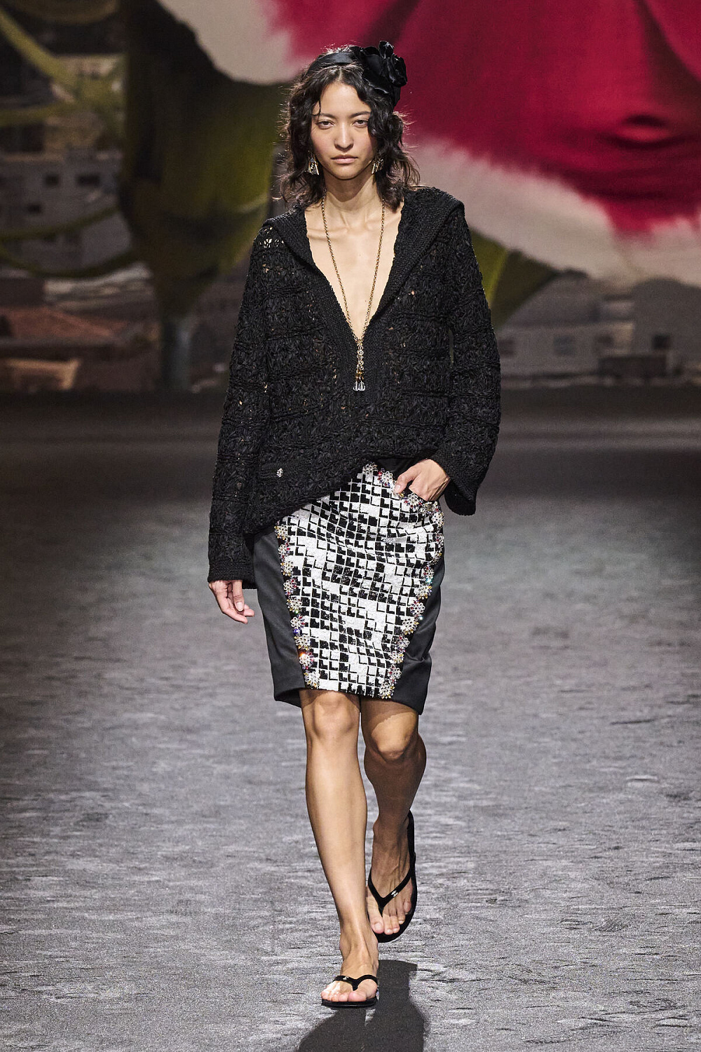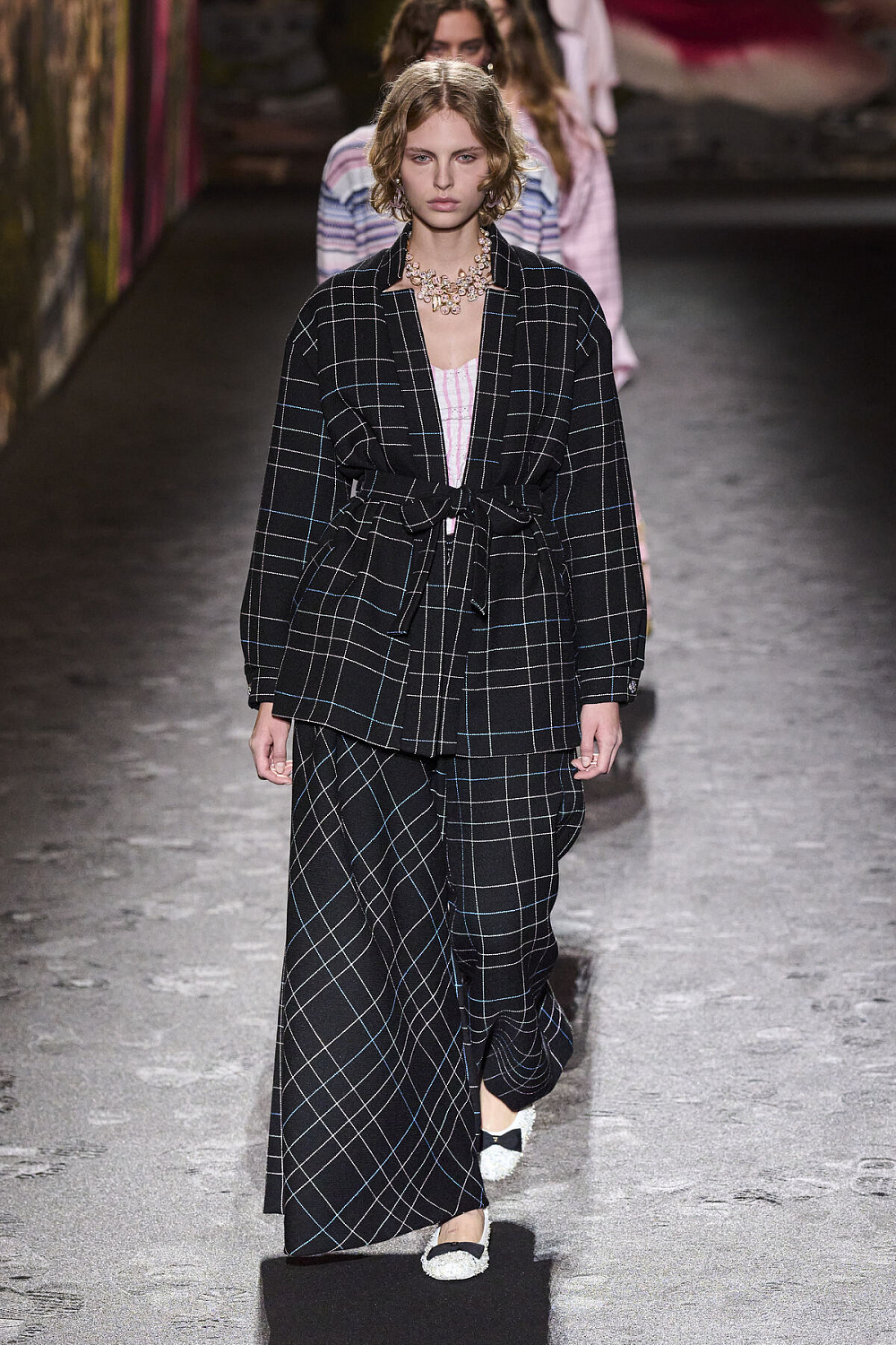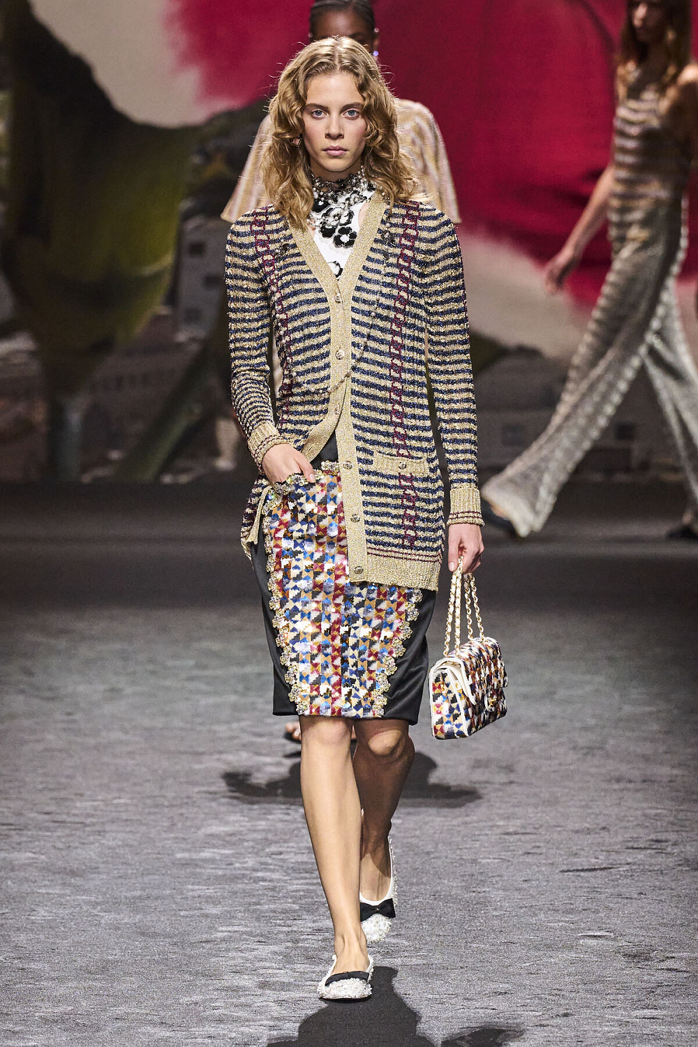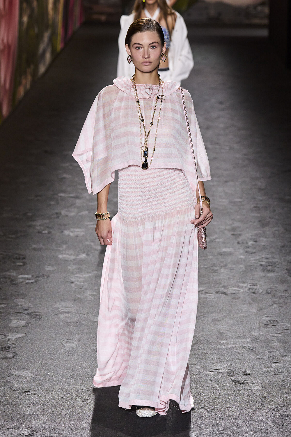 Натхнена сонячними садами вілли Noailles, побудованої архітектором Робертом Малле-Стівенсом для меценатів Шарля і Марі-Лор де Ноай між 1923 і 1927 роками, колекція Chanel весна-літо — 2024 стала втіленням неймовірної французької природи, соковитих кольорів, літа та свободи. А модерністська архітектура вілли надихнула Віар на яскраві геометричні візерунки, асиметрію, печворк, а також смужки та клітинки на будь-який смак.
