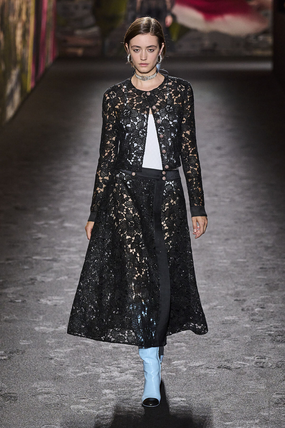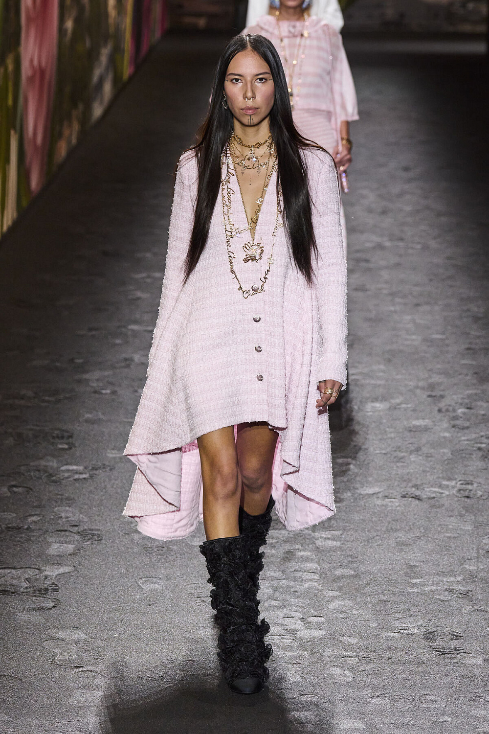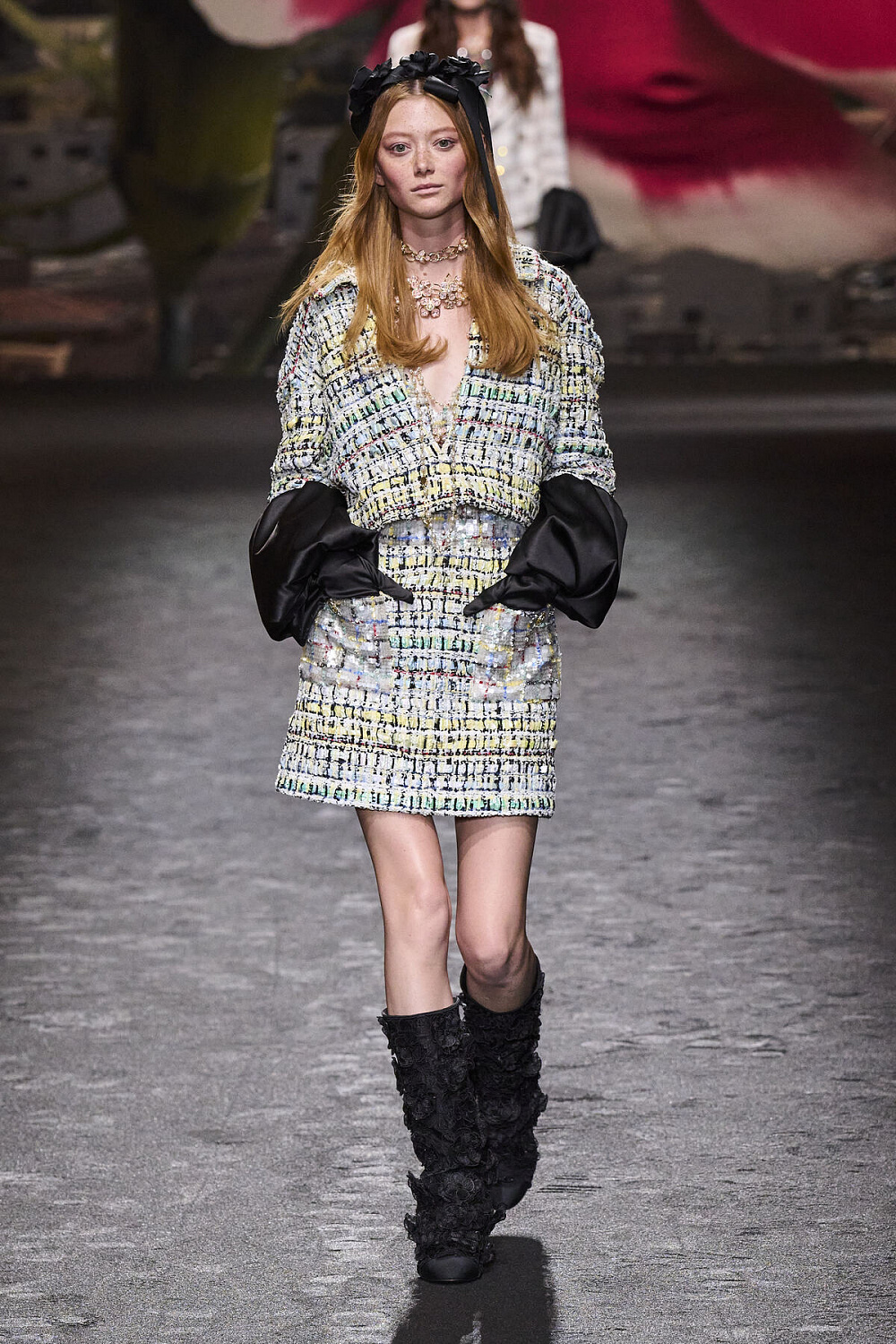 В останній день Тижня моди у Парижі зіркові гості зібралися на одному з найочікуваніших показів сезону — шоу Chanel, яке Віржіні Віар представила у дощовий вівторок у французькій столиці. Моделі дефілювали по виставковому залу Grand Palais Éphémère в центрі Парижа, демонструючи клаптикові ансамблі, знаковий для модного дому твід, легкі квіткові сукні й не тільки.