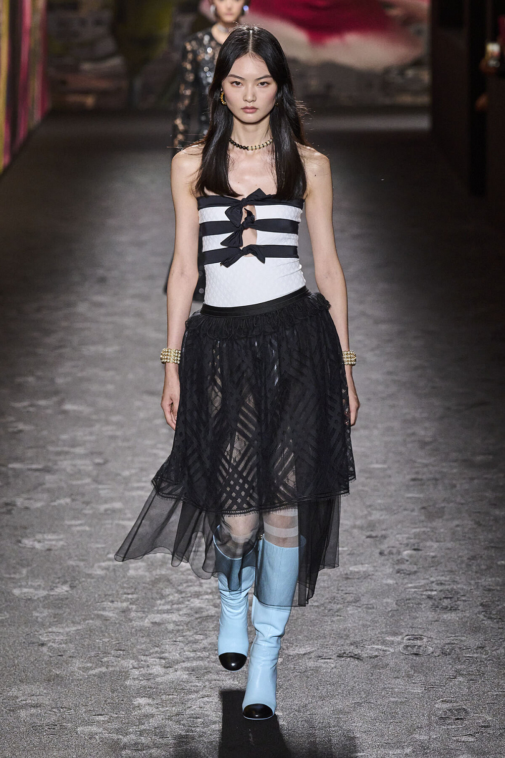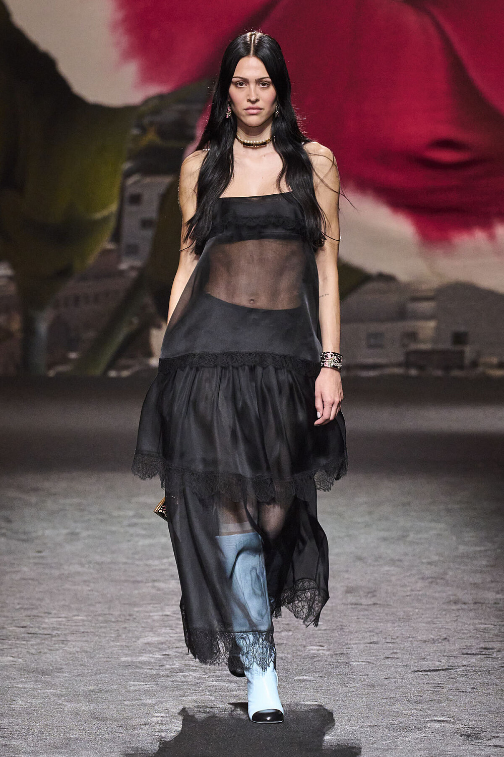 Підтримуючи по-справжньому літню атмосферу колекції, яка поєднала у собі розкіш та розслабленість, моделі з`являлися на подіумі у купальнику в парі з твідовою накидкою, у прозорих спідницях та повітряних сукнях. Окрасою колекції стали вишиті мотиви у вигляді фруктів та квітів, характерні для мальовничих натюрмортів. Доповнювали образи сонцезахисні окуляри, прикрашені золотими ланцюжками, та масивні прикраси.
