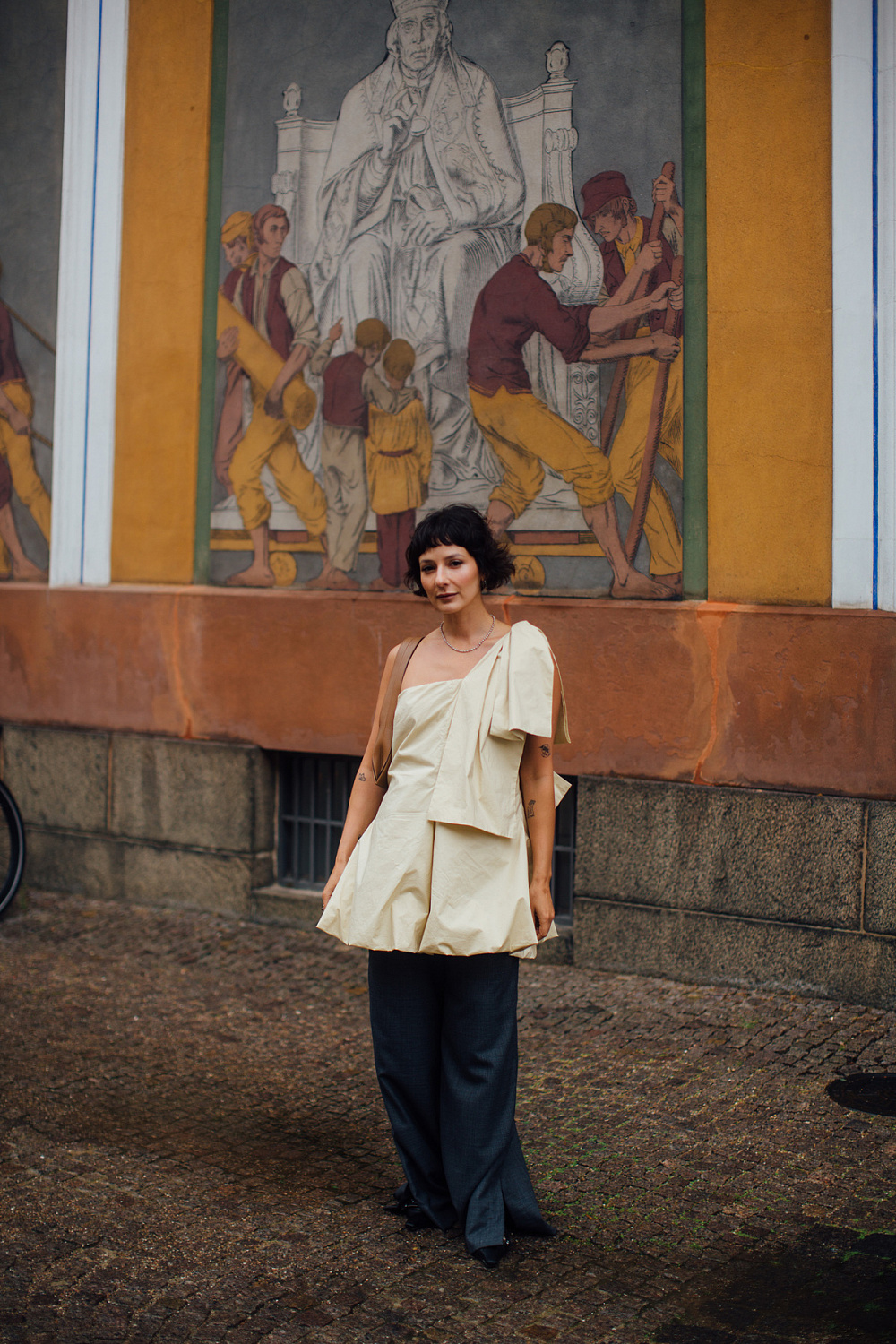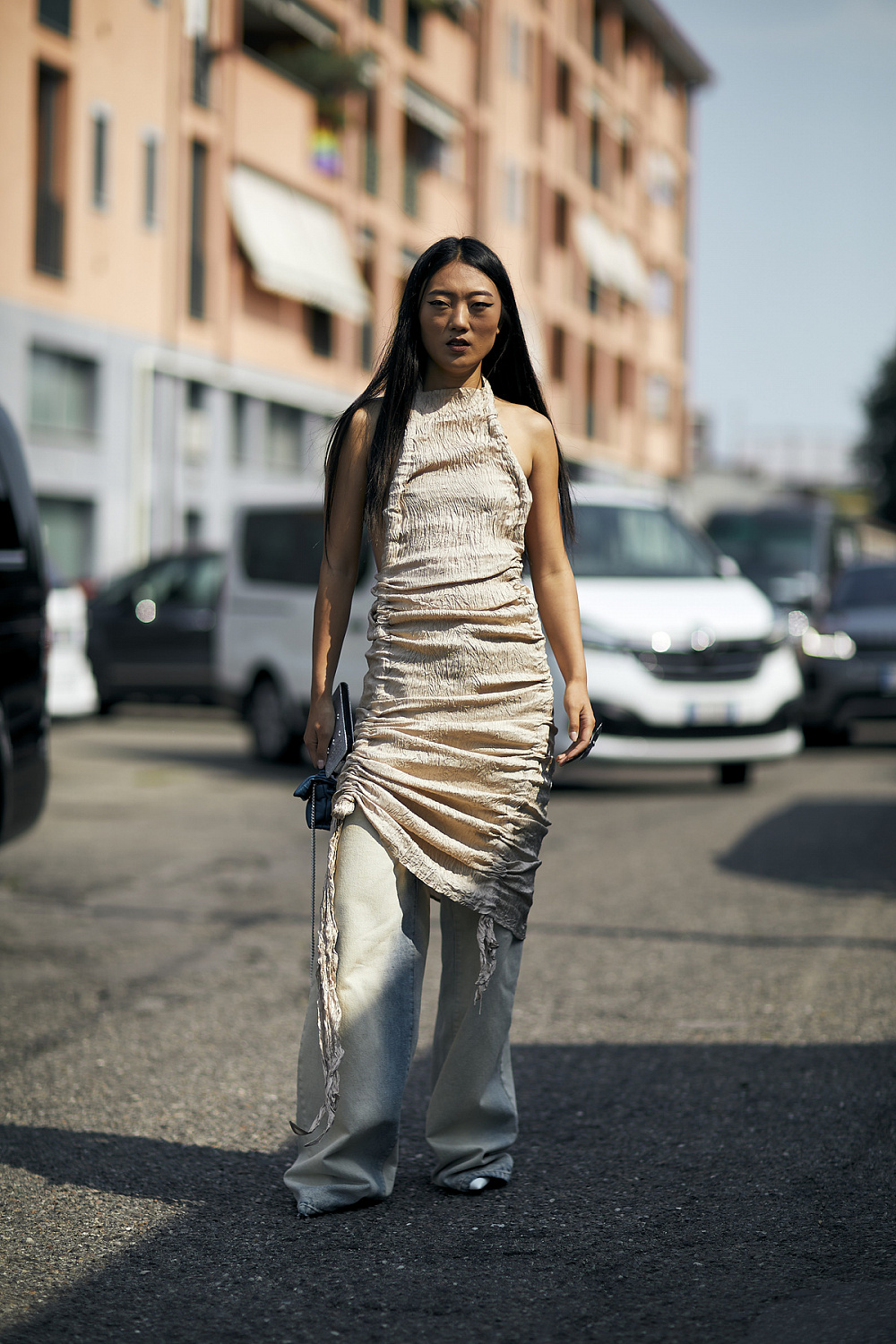 Та є й інші, менш очевидні варіанти стилізації. Найсміливіший з них — сукня у поєднанні зі штанами. Аби таке поєднання виглядало вдало, фешіоніста переважно обирають одну кольорову гаму, водночас експериментуючи зі стилями та настроями: шкіряні штани вони поєднують з ніжними шовковими сукнями, класичні штани — з повітряними напівпрозорими сукнями тощо.