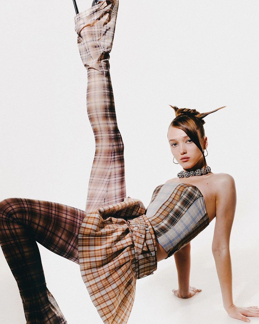 «Ми віримо, що екологічна мода може бути сексі», — говорять у молодому та амбітному бренді Lunatic Studio, який був заснований у 2022 році. Його фокус у базових речах, «приправлених» сексуальними деталями та несподіваними вирізами, а об’єднавчим елементом колекції став картатий принт. Так, у першому дропі з’явилися жакети зі звабливими вирізами, тренчі-конструктори та асиметричні спідниці, що «ламають» візерунок шотландської клітинки. До речі, присвячена ця колекція серіалу «Ейфорія» та її головним героїням.