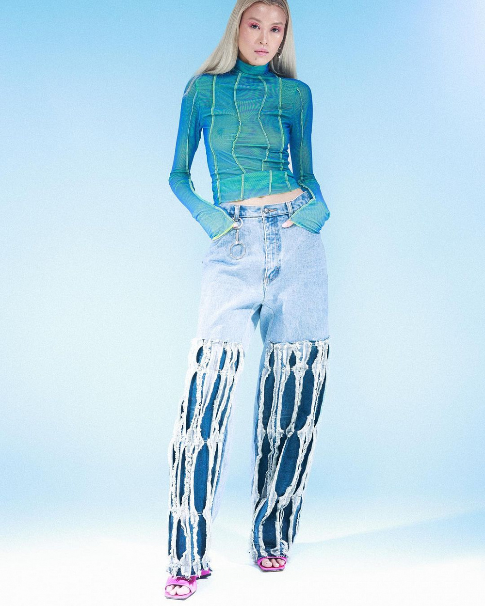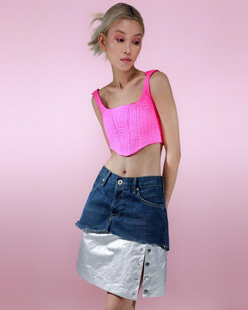 SHEV Studio — молодий український бренд, який за допомогою стійкої моди говорить про важливе: ментальне здоров’я, пошук себе у мінливому світі та потребу говорити про те, що болить. Так, перша колекція була побудована на унісекс-силуетах, що підкреслюють найголовніше — ментальна стабільність не має статі та не залежить від гендеру. Одяг тут нагадує захисний шар, що допомагає не втратити себе у світі, який божеволіє. У новій весняно-літній капсулі дизайнерка марки Барбара Шевчук дає нове життя вінтажному деніму — матеріалу, який практично неможливо зносити, через що кожна нова його інтерпретація перетворюється на захопливу гру. Особливо ефектно виглядають максіспідниці з вінтажного деніму — зібрані в техніці печворк або доповнені іншими незвичайними тканинами, наприклад, бавовною, натертою срібним пігментом.