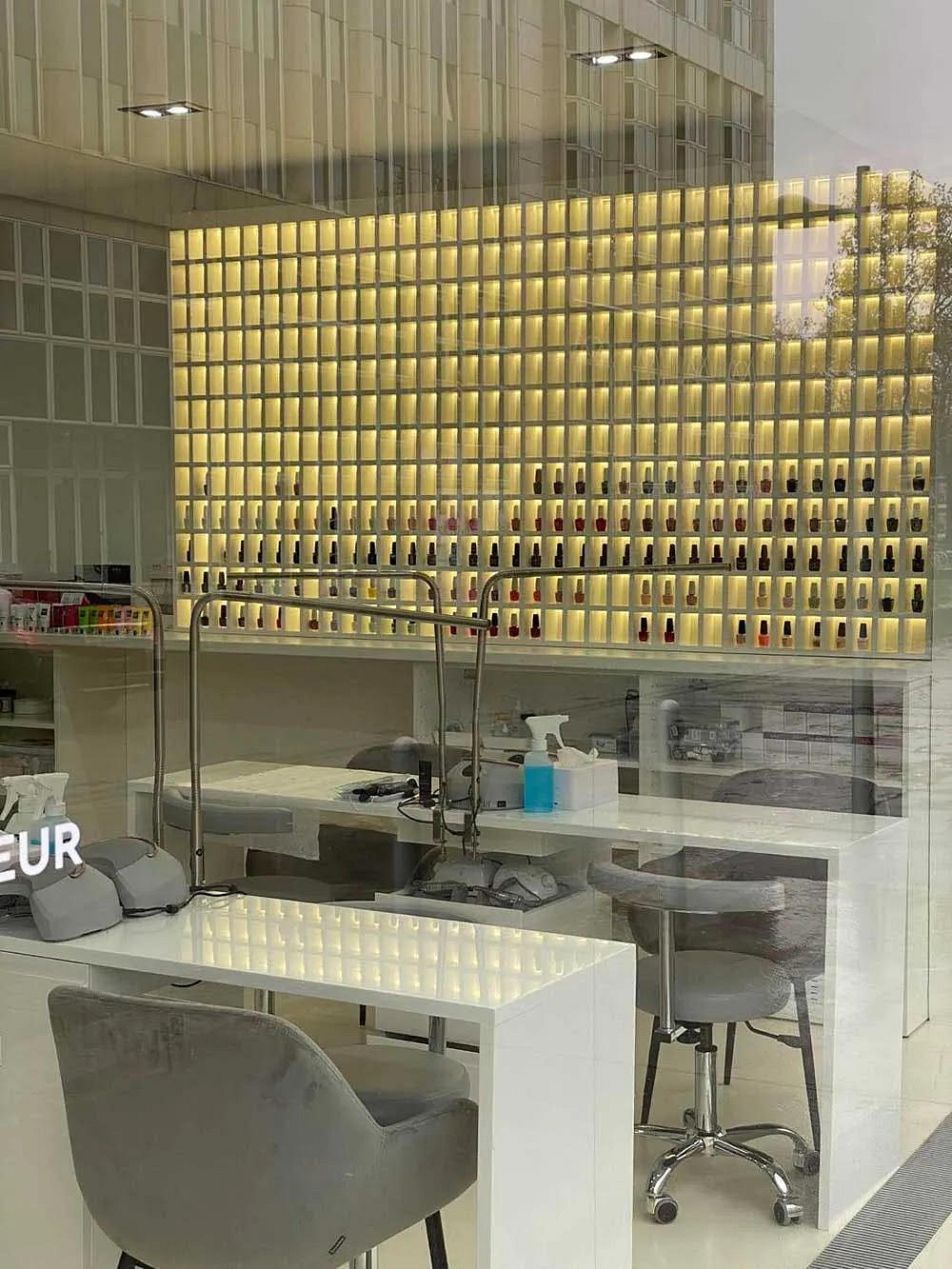 MVK — мережа агендерних майстерень нігтьової естетики з власними лабораторіями по стерилізації інструментів. Салони оформлені в нейтральних тонах, щоб представникам обох статей було комфортно.