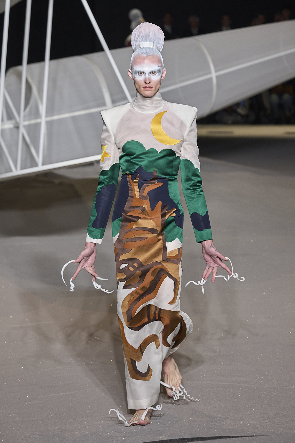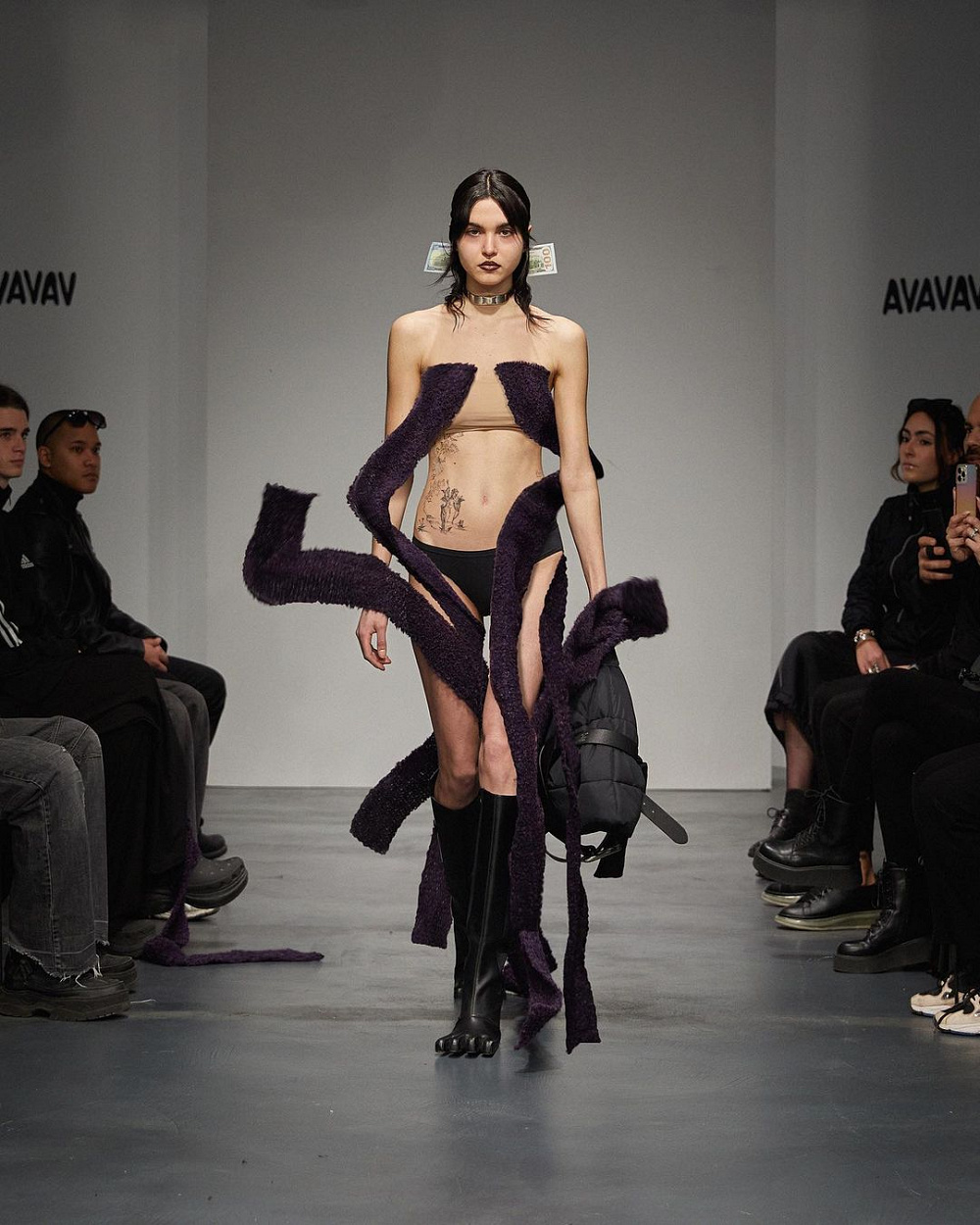 Втім, не всі повірили в пояснення Беатріс. Дехто сприйняв цей показ як пародію на фанатів люксу, які готові платити тисячі доларів за рвані кеди чи «зіпсований» светр. До речі, це не перший перформанс AVAVAV. У 2021 році бренд представив величезні чоботи-монстри, зроблені з відходів, аби привернути увагу до екологічної проблеми в індустрії. Восени наступного року на показі всі моделі перечіпалися і падали на подіумі, аби висміяти незручне взуття, в якому неможливо ходити.