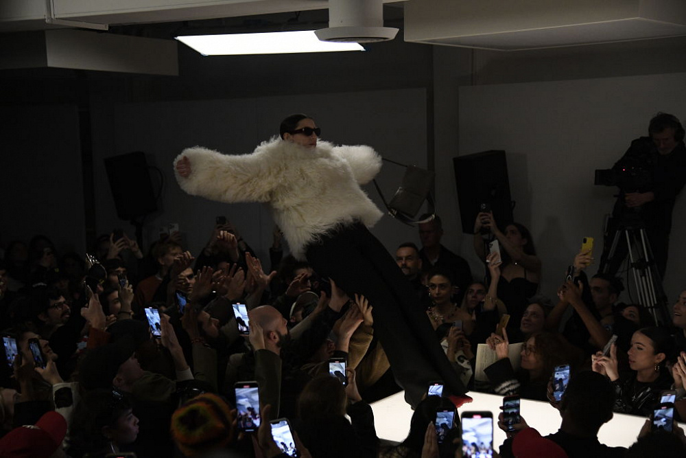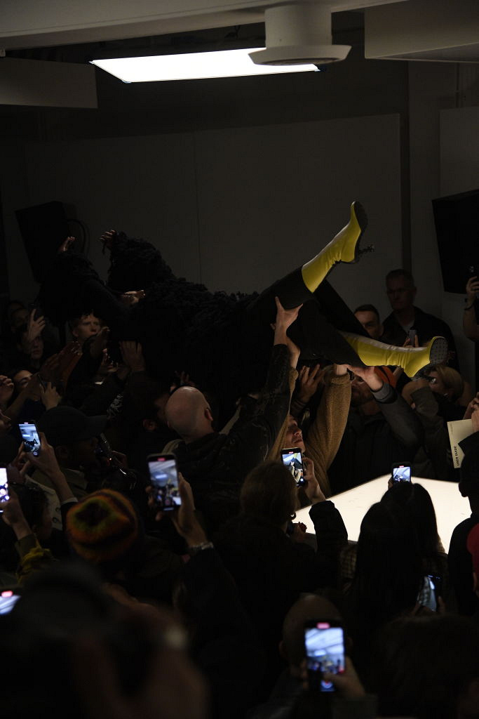 Одним із найяскравіших на Міланському тижні моди сезону осінь-зима 2023-2024 став показ Sunnei, який пройшов у штаб-квартирі бренду. Моделі завершували свої дефіле ефектним падінням із високого подіуму прямо в натовп (точнісінько, як рок-зірки стрибають зі сцени до своїх фанатів). Ловили їх гості та члени команди бренду: від асистентів до бухгалтерів. «Ми хотіли віддати данину нашій команді, адже вони є для нас щоденним джерелом наснаги. І нам хотілося, щоб глядачі брали участь у цьому моменті краси та свободи», — розповів дизайнер Сімон Різзо.