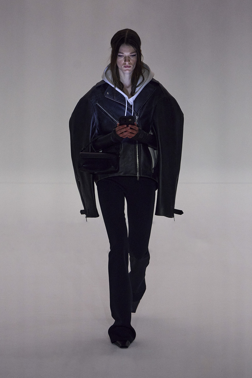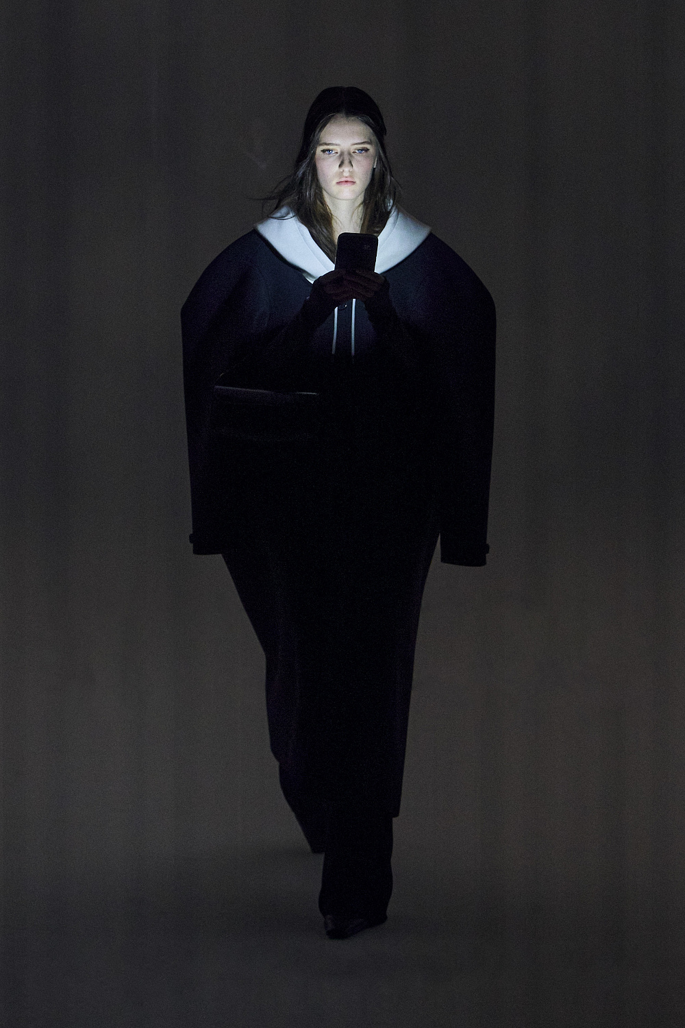 «Моїм натхненням справді став телефон і те, як він всюди присутній у нашому житті», — розповів ді Феліче. Цікаво, що пальта, худі та куртки, представлені на показі, були скроєні з вертикальними прорізами (певно, для зручності користування смартфоном). Епоха диджиталізації, як вона є!