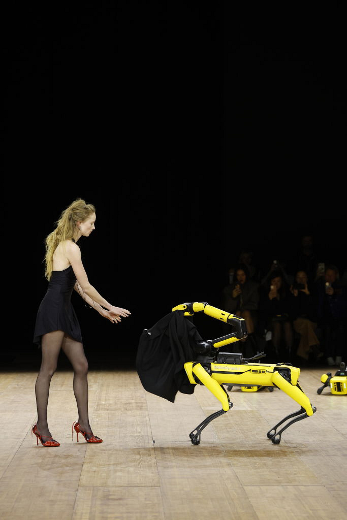 У 2022 році Сoperni приголомшив публіку перформансом з Беллою Гадід. Тоді на оголене тіло моделі нанесли спеціальний спрей із рідкої бавовни, який за лічені миті перетворився на білосніжну сукню. Цього року дизайнери Себастьян Меєр та Арно Ваян вирішили не понижувати планку і перетворили показ FW 23-24 в технологічне шоу. Дизайнери спробували оживити на подіумі сюжет байки Жана де Лафонтена «Вовк і ягня», звісно, на свій лад. За їхнім сценарієм, ягнятами виступили моделі, а вовками — зграя собак-роботів Boston Dynamics. Найяскравішим моментом шоу став вихід моделі Ріанни ван Ромпей, якій робот допоміг зняти піджак. Інший робо-пес потримав сумку Ліли Мосс. У такий спосіб дизайнери намагалися показати нам, як технології та люди можуть співпрацювати заради кращого майбутнього.
