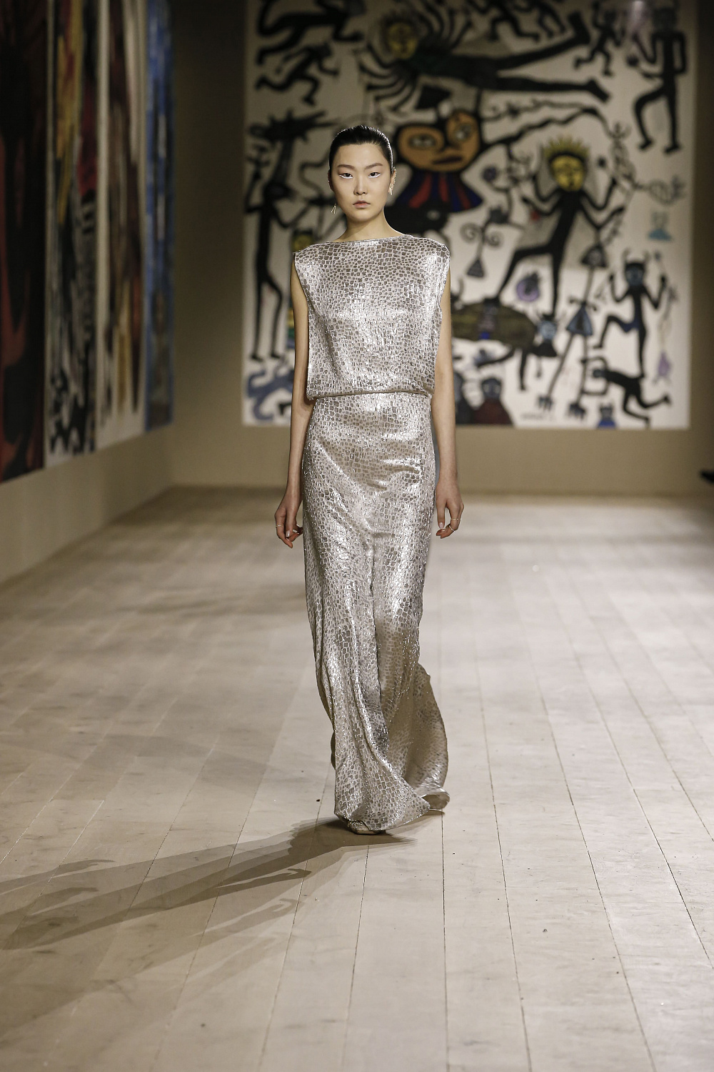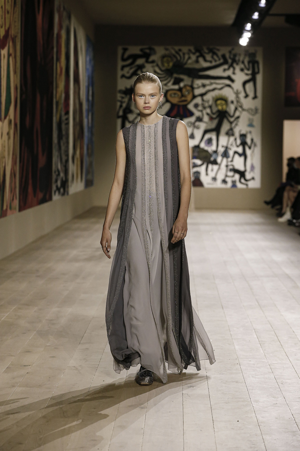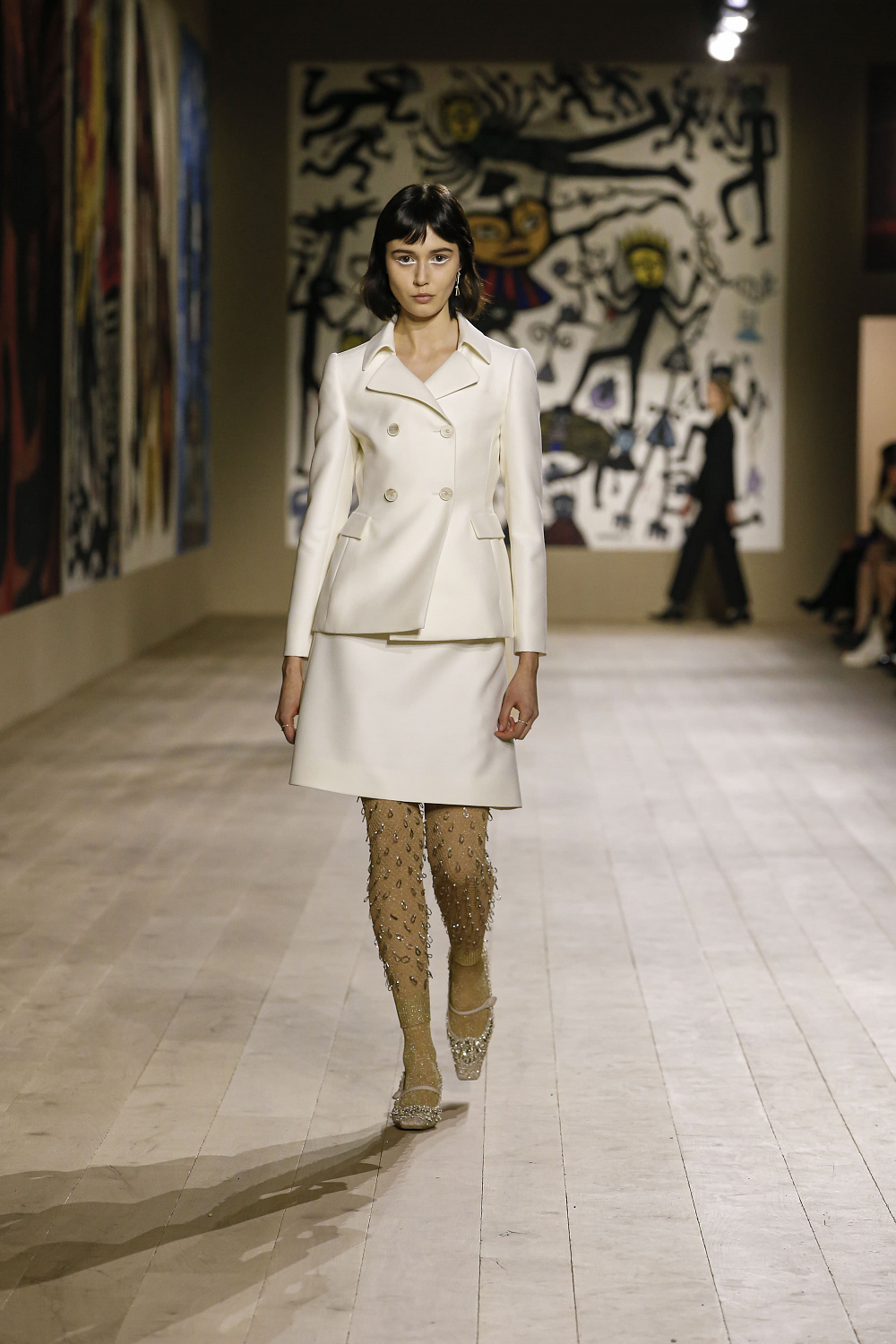 Її нова кутюрна колекція стала справжнім втіленням її слів. К’юрі представила лаконічне вбрання, за створенням якого стоїть копітка праця майстрів Модного будинку. На вигляд прості силуети приховують у собі деталі, від яких неможливо відірвати погляд. Особливу увагу привертає вишивка. У новій колекції дизайнерка робить на ній акцент. Сукні, пальто, жакети та навіть колготки прикрасила вишивка із кристалів та бісеру. Справжній тріумф елегантності та інтелектуальної розкоші.