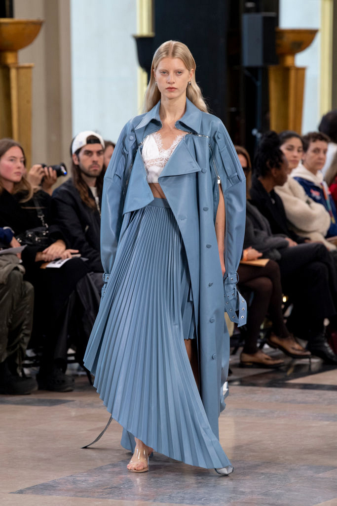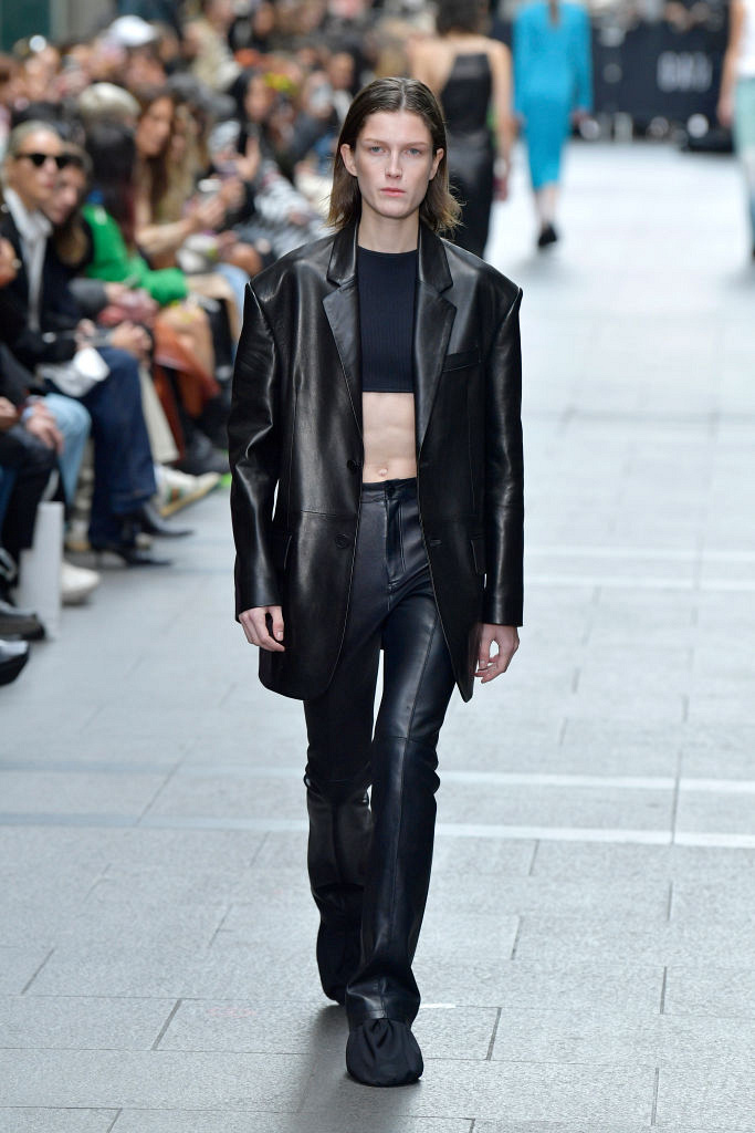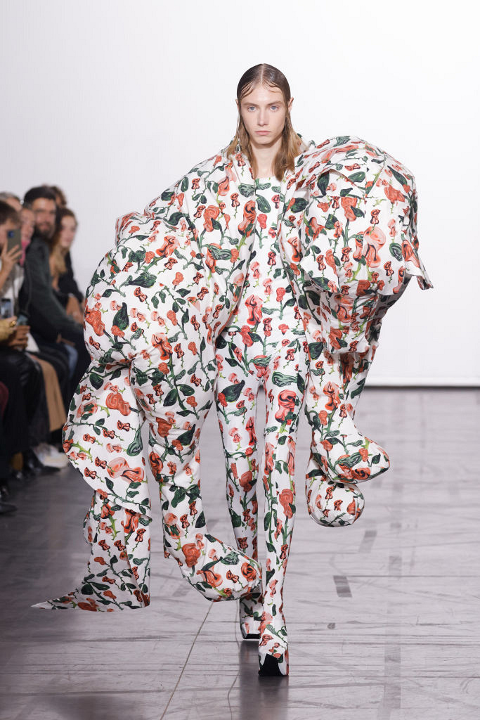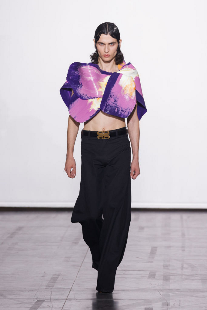Дизайнер Альфонс Метрп’єр працював у кутюрному відділі Jean Paul Gaultier, тому елемент драми та перформансу не може не бути присутній. Візьміть для прикладу хоча б фінальний вихід «нареченої» за канонами класичних показів: у Альфонса це був хлопець, закутаний у білу спальну ковдру. Розмиття гендерних норм узагалі стає новою нормою в моді, тому принтовані легінси з кроп-топами та клатчами (неймовірні!) бренд пропонує приміряти всім.