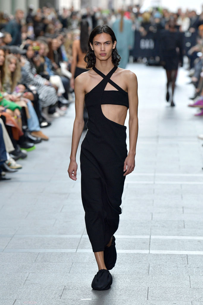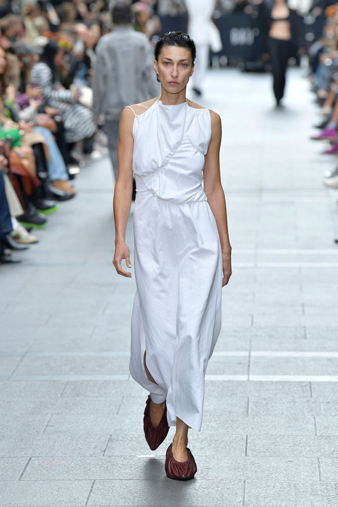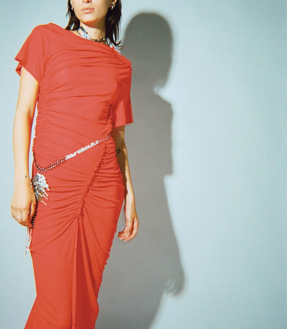 Драповані сукні з м’якого текстилю, що повторює контури тіла, вдаються дизайнеру Антонену Трону краще за все. Він моделює їх просто на фігурі у вільній техніці Жанни Ланвен. Результат — сексапільні та витончені моделі у стилістиці пізніх 90-х — початку 2000-х. Саме те, що потрібно мати в гардеробі кожній у цьому і в наступному сезоні. Бонус: бренд широко використовує перероблені матеріали, слідуючи sustainable-філософії.