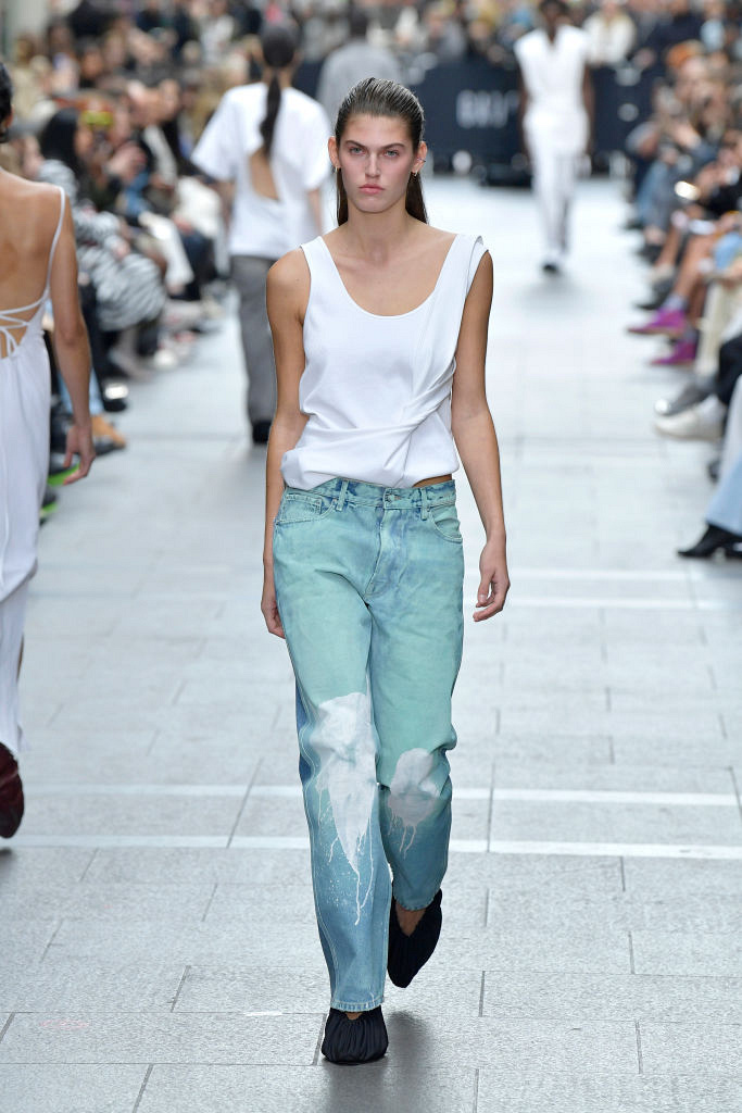 Італійський бренд звів усіх з розуму минулого літа своїми спідницями-парео із шовку з топами тай-дай для вечірок на березі моря, а у майбутньому сезоні розвиває тему розслабленого одягу у вечірньому стилі на кожен день. Мікроміні та шовкові сорочки з ручною вишивкою, джинси карго з боксерками, що виступають за ремінь, топи у стилі 2000-х. Бонус — сукні та сорочки з ефектом градієнта у кольорах українського прапора. Бренд також прагне до gender fluidity: у відео до колекції головними героями стали хлопець та дівчина, які обмінюються елементами гардероба. Доведено: речі бренду мають гармонійний вигляд на обох.