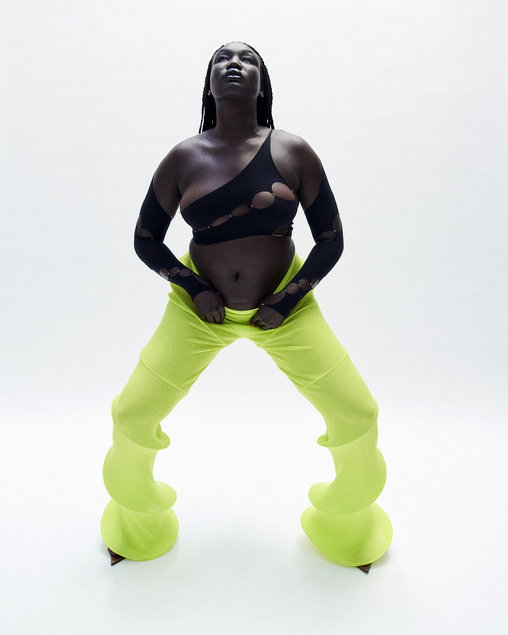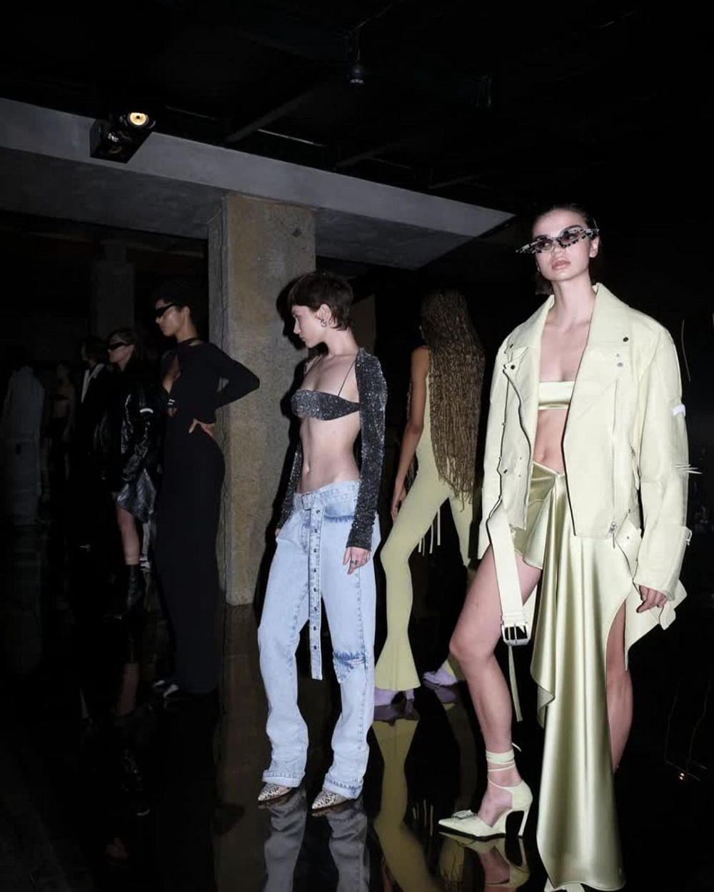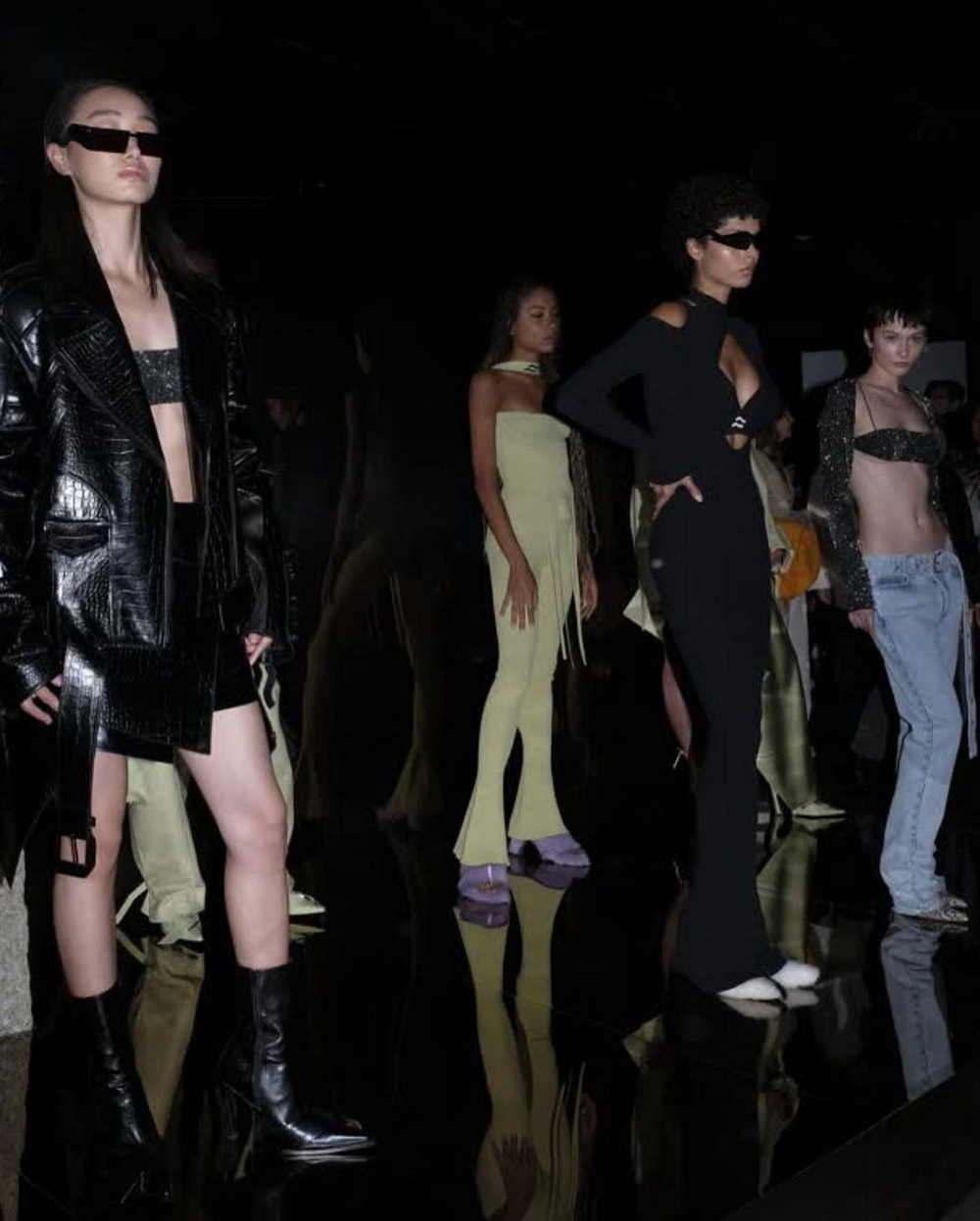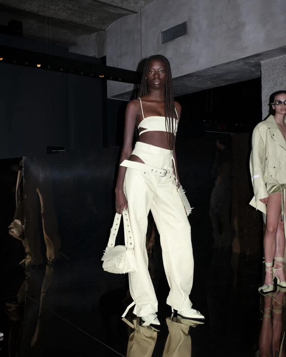 На презентації Ssheena в міланському Antonioli зібралася наймодніша публіка міста: бренд не дуже відомий широкому загалу, але вже з першого погляду зрозуміло, чому зараз речі Сабріни Манделлі такі популярні серед інсайдерів. У колекції — всі ключові речі найактуальніших ранніх 2000-х, помножені на якість Made in Italy: трикотажні мінісукні, ультракороткі спідниці з низькою талією, штани карго, мікротопи, шкіряні тренчі оверсайз, широкі джинси у поєднанні з кроп-топами зі сріблястого люрексу. Дистильований коктейль із гарячих хітів без ризику бути too much.