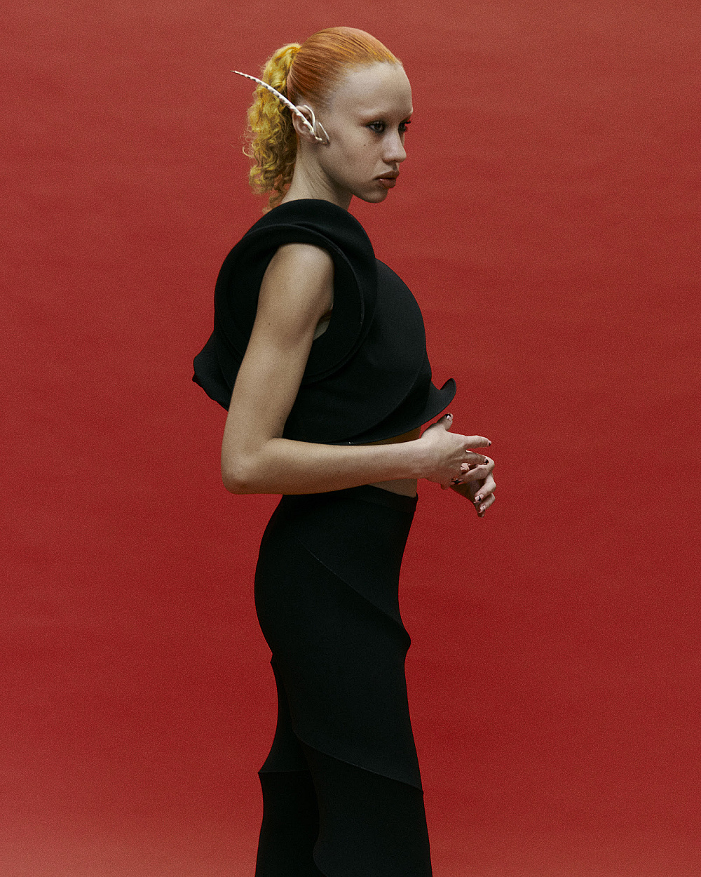 Філософія та поетика є основою провокаційних і артистичних колекцій Rui, але в сучасному світі такий комплексний глибокий підхід до одягу починає мати великий попит. Дизайнер Руй Жу досліджує баланс ідеального та неідеального, нашу тендітність, чутливість та чуттєвість. У перекладі на речі це виглядає дуже актуально: розрізані сукні, які тримаються на булавках, розідраний трикотаж у стилі 2000-х, кроше і босоніжки на зав’язках до коліна у неонових кольорах для походу на рейв-вечірку.