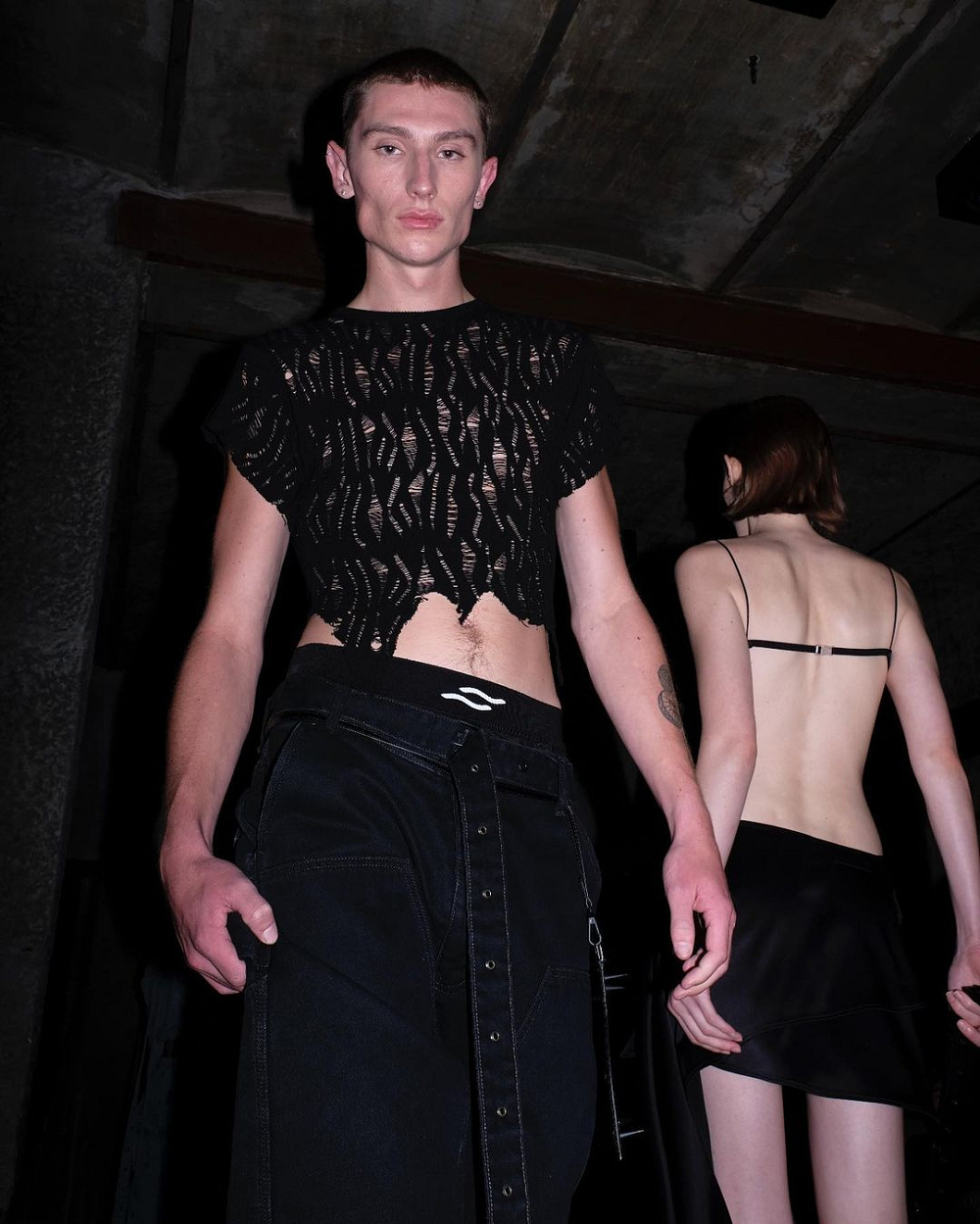 Голландський бренд епатує, демонструючи жіночні спідниці та ботфорти на підборах на чоловіках з вусами (у сміливому Парижі таких можна все частіше зустріти і в реальному житті), але самі колекції зацікавлять не тільки прихильників gender fluidity. Ювелірно скроєні костюмні топи та спідниці з контрастною підкладкою на показ (часто перероблені з вінтажних речей), невагомі трикотажні топи, шовкові блузи та архітектурні жакети сподобаються фанатам естетики Мартіна Маржели.