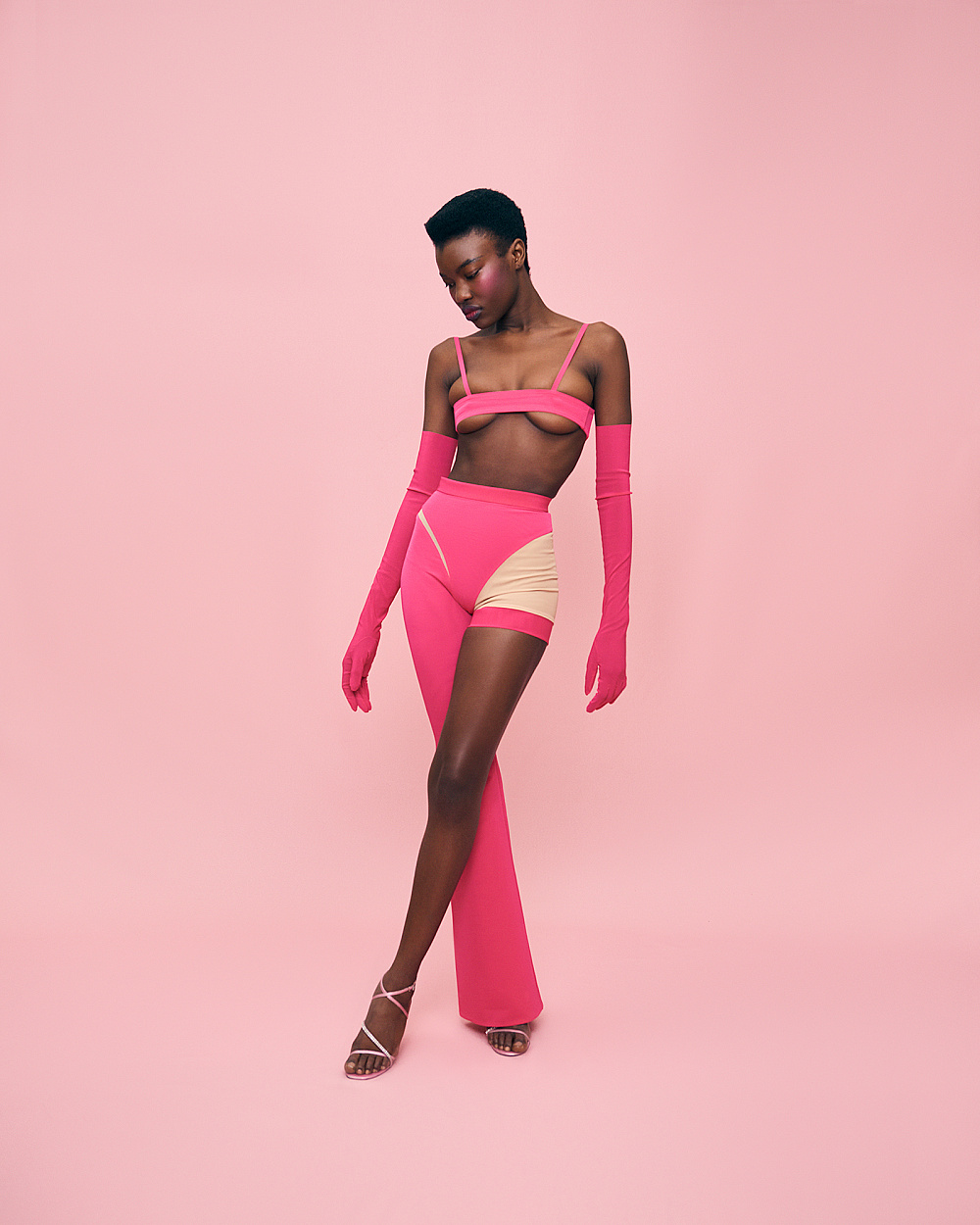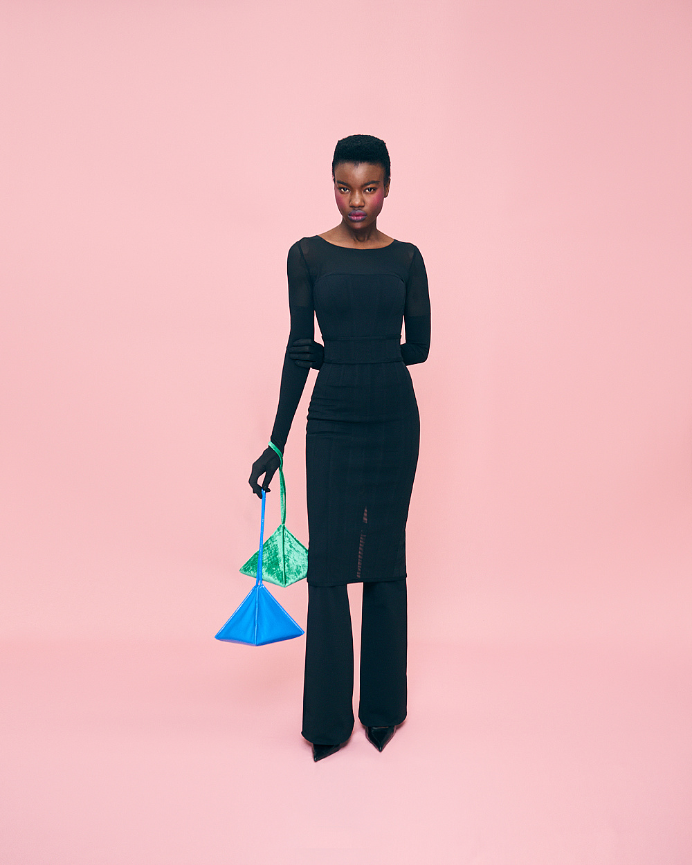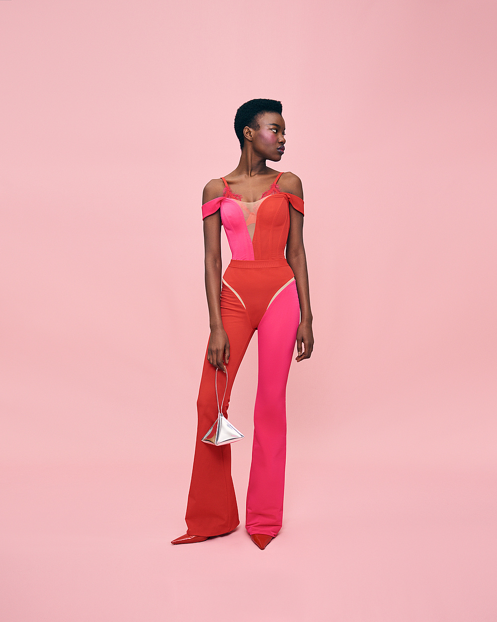 На головні елементи колекції AMORE MIO Івана Фролова надихнули різні періоди італійської культури. Приталені комбінезони, боді, корсети з V-вирізами та мінісукні притаманні для найстильніших зірок італійського шоубізнесу, а луки з асиметричними елементами надають тілу S-подібного силуету — так він нагадує скульптури періоду італійського бароко. Лонгслів у новій колекції можна стилізувати 14 різними способами.
