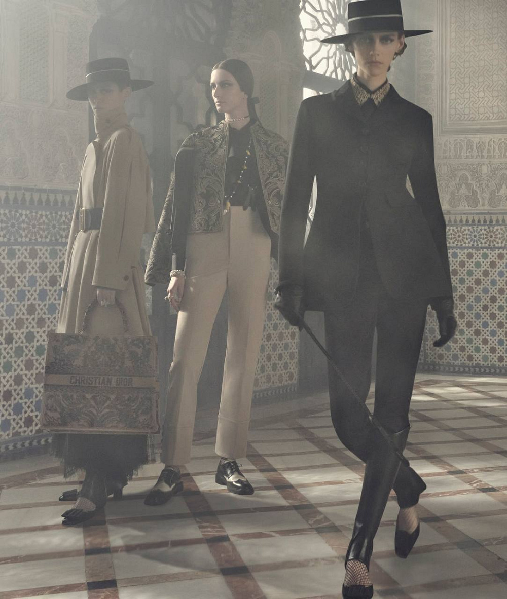 У новій колекції Марія Грація К’юрі підкреслює досконалість майстерень Dior і багатство іспанської культури. Вбрання виходять за межі чоловічого та жіночого дрес-коду. Брюки, накидки та болеро разом з культовим сідлом додають образам нотку елегантності та кінної грації. Нова мантилья, шкіряні рукавички та віяло відтворюють традиційний андалузький дух у поєднанні з незмінною сучасністю стилю Dior.