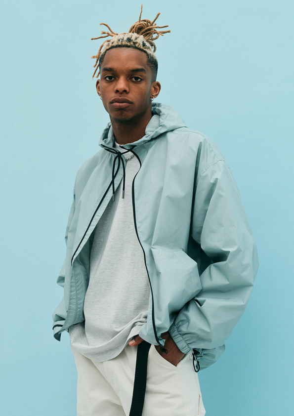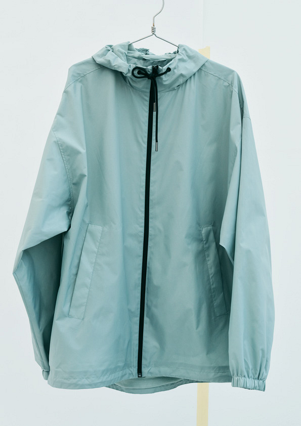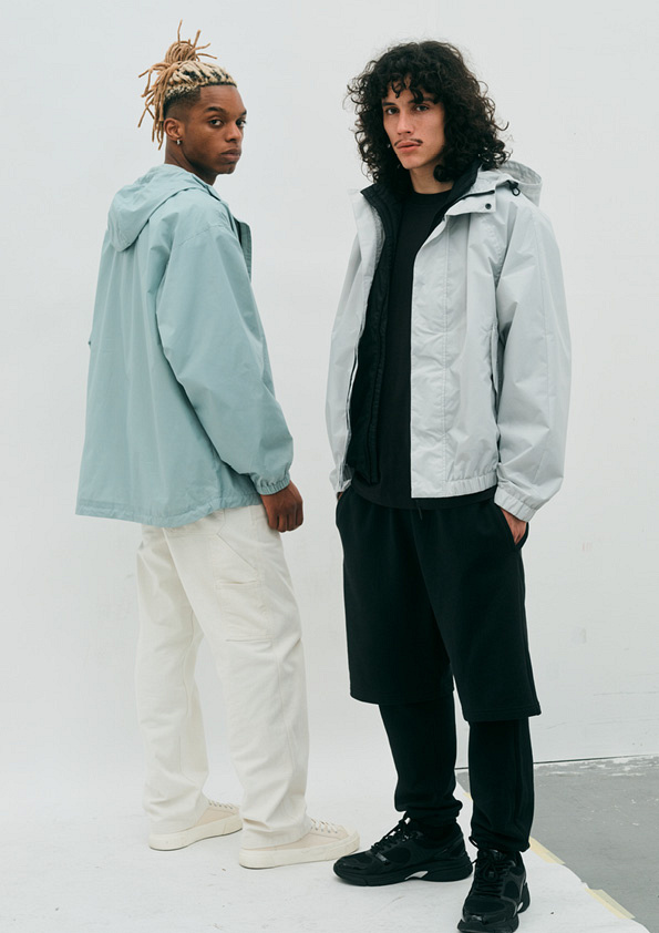Неодмінним атрибутом є вітровка, доступна у двох варіантах: укорочена світло-сіра та оверсайз фісташкова. Обидві виготовлені зі 100% переробленого поліестеру та пофарбовані з використанням екологічнішого методу фарбування, розробленого відзначеною нагородами компанією We aRe SpinDye®, що розробляє екологічно чисті технології.
