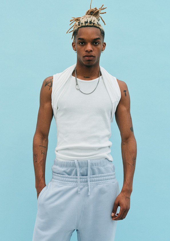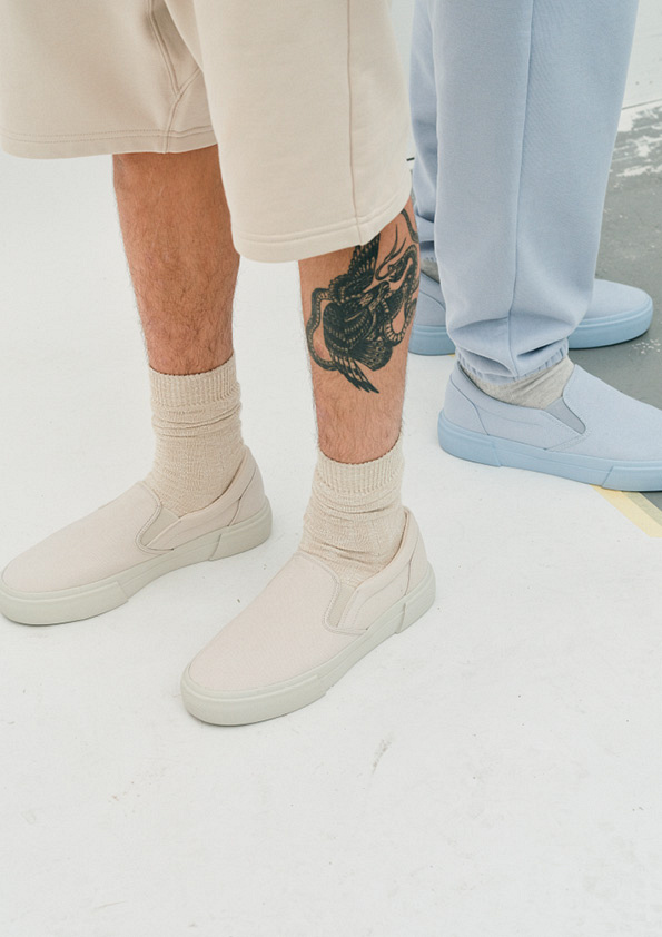 Колекція Blank Staples складається із футболок, толстовок, худі, джогерів, спідньої білизни й шкарпеток — верх і низ можна легко носити як комплектами, так і окремо. Новими доповненнями є вітровки, толстовки на блискавці, повсякденні шорти, туфлі та шапки. Колірна палітра представлена в бляклих пастельних тонах: фісташковому, небесно-блакитному та графітовому.