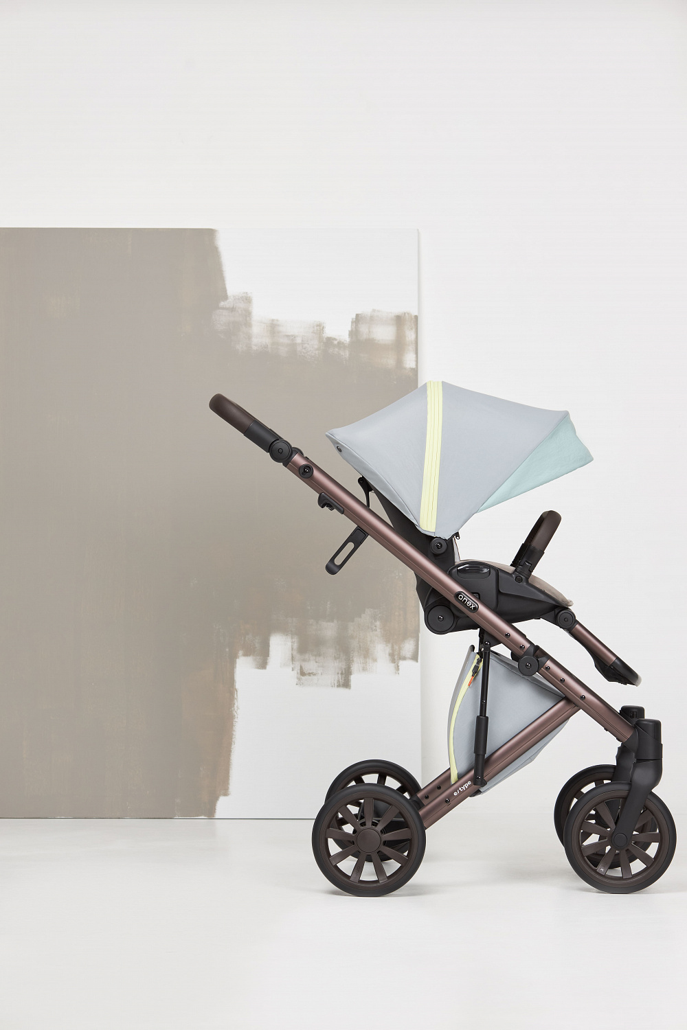 Візочок e/type x Victor Wilson — це перша поява e/type у тканині! В оновленій моделі творці вперше замінили традиційну екошкіру на фактурний м’який текстиль з бавовною у складі, що захистить малюка від дощу та сонця. А лагідне поєднання відтінків, натхненних природою, заміняє звичний монохром.