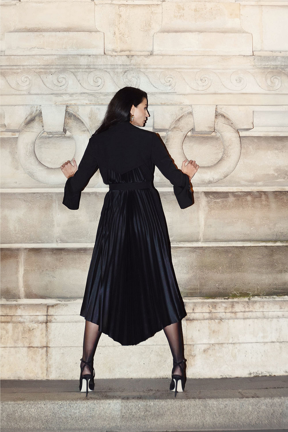 Речі нової капсули передають шарм загадковості Парижа — міста, де проходили знімання кампейна. Серед одягу — плаття-тренчі з повністю згофрованою шовком спиною, зручні топи та комбінезони з декоративним плюмажем, штани разом з сорочками та жакетами, а також — в’язані й асиметричні сукні. Усі речі виконані в чорному кольорі.