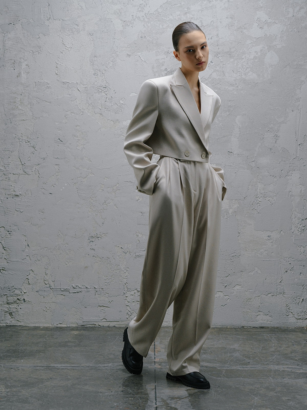 До нової колекції увійшли: топи, сукні з бахромою, тренчі та костюми з укороченими піджаками, які можна поєднувати зі штанами або максіспідницями.