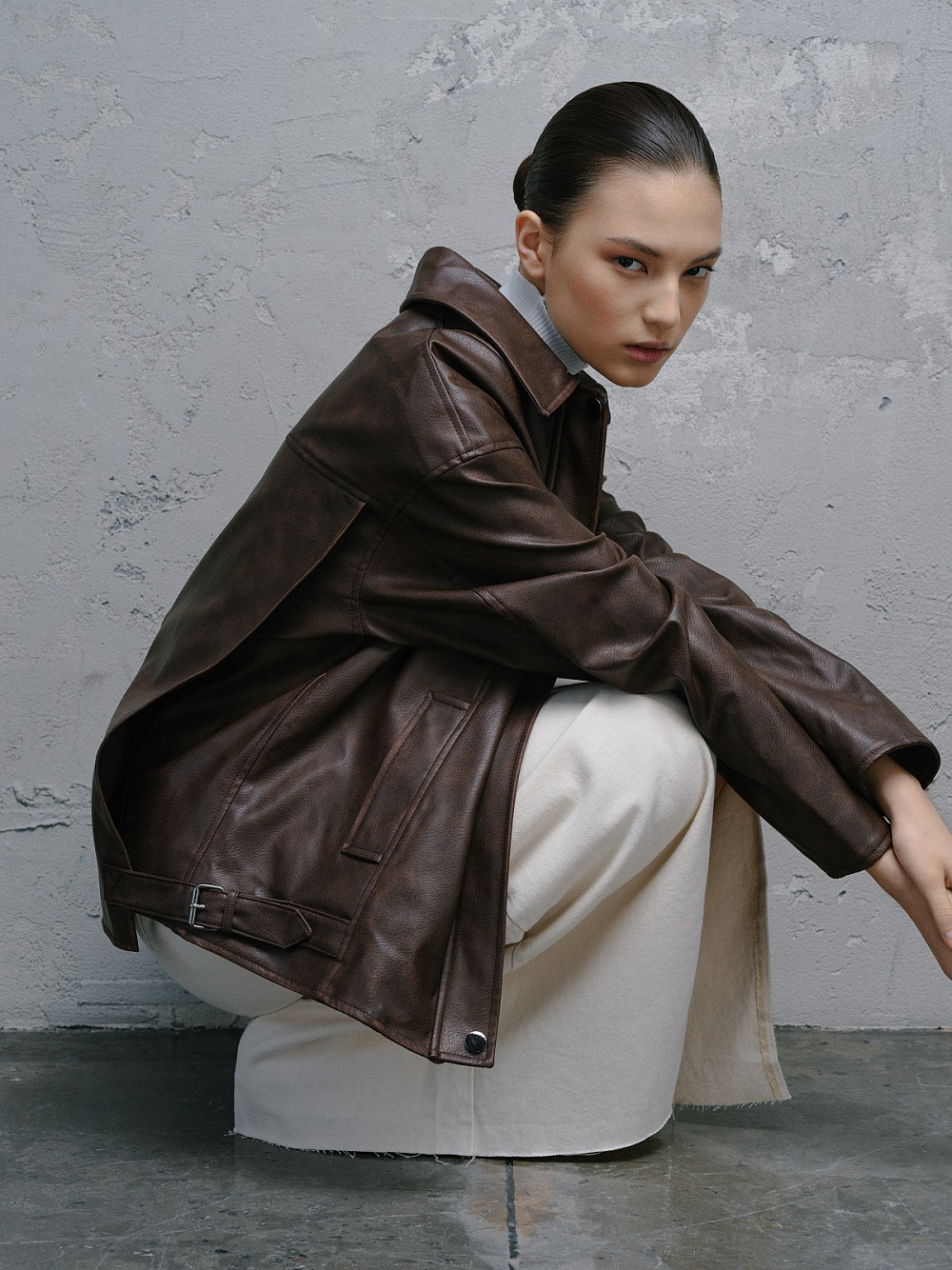 Особливий настрій дропу передають шкіряні куртки, які одразу повертають у минуле. Треба зазначити, що бренд по-особливому підійшов до створення однієї з моделей. Так, потертості на коричневій куртці створювались вручну, аби додати вінтажного стилю та зберегти оригінальність речі.