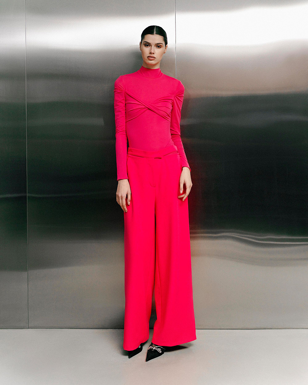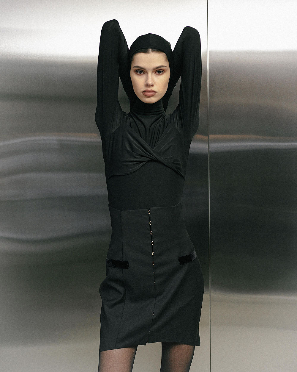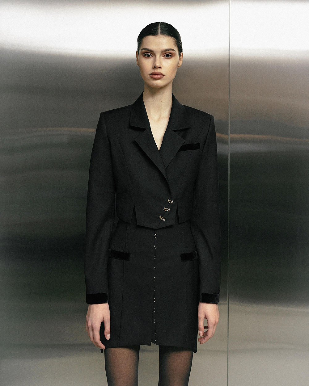 Акцент у колекції зроблено на коктейльні сукні, але не обійшлося й без знакових речей бренду: боді в декількох варіантах, кроп-жакет, який можна носити зі спідницею або штанами, спідниці та сукні міні й міді. Закриті сукні з вирізами на спині, оголені плечі, висока талія й кльош, боді з цільнокроєною балаклавою, нові форми розрізів — речі виглядають грайливо, але водночас більшість із них є цілком адаптивними для повсякдення.