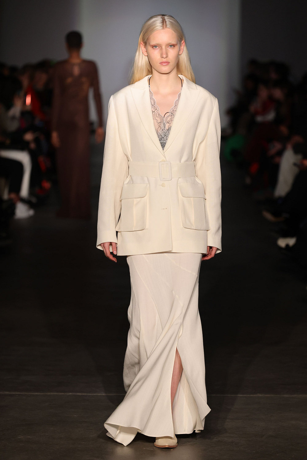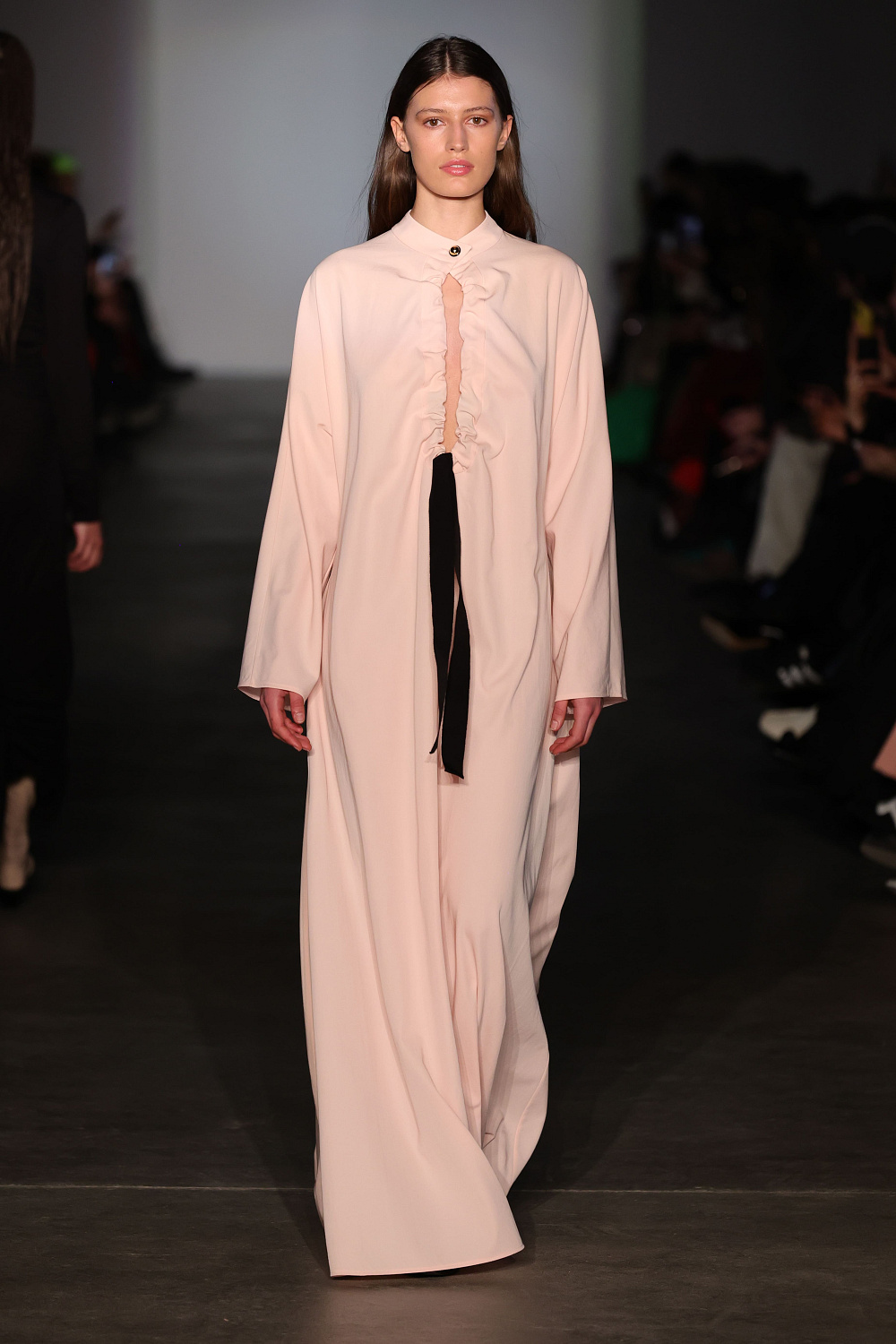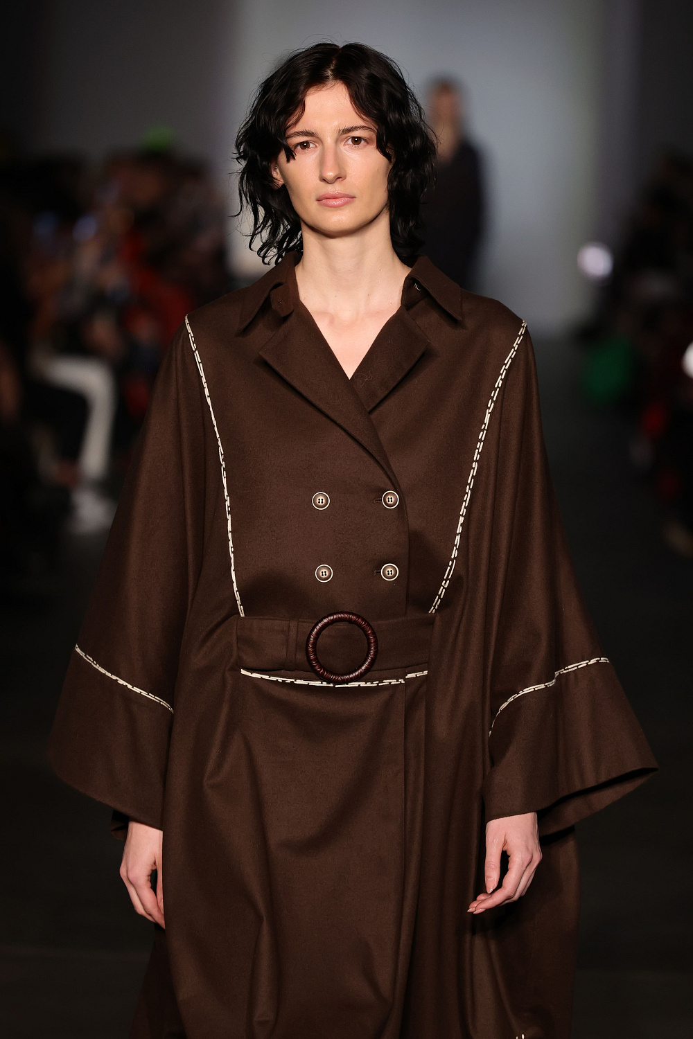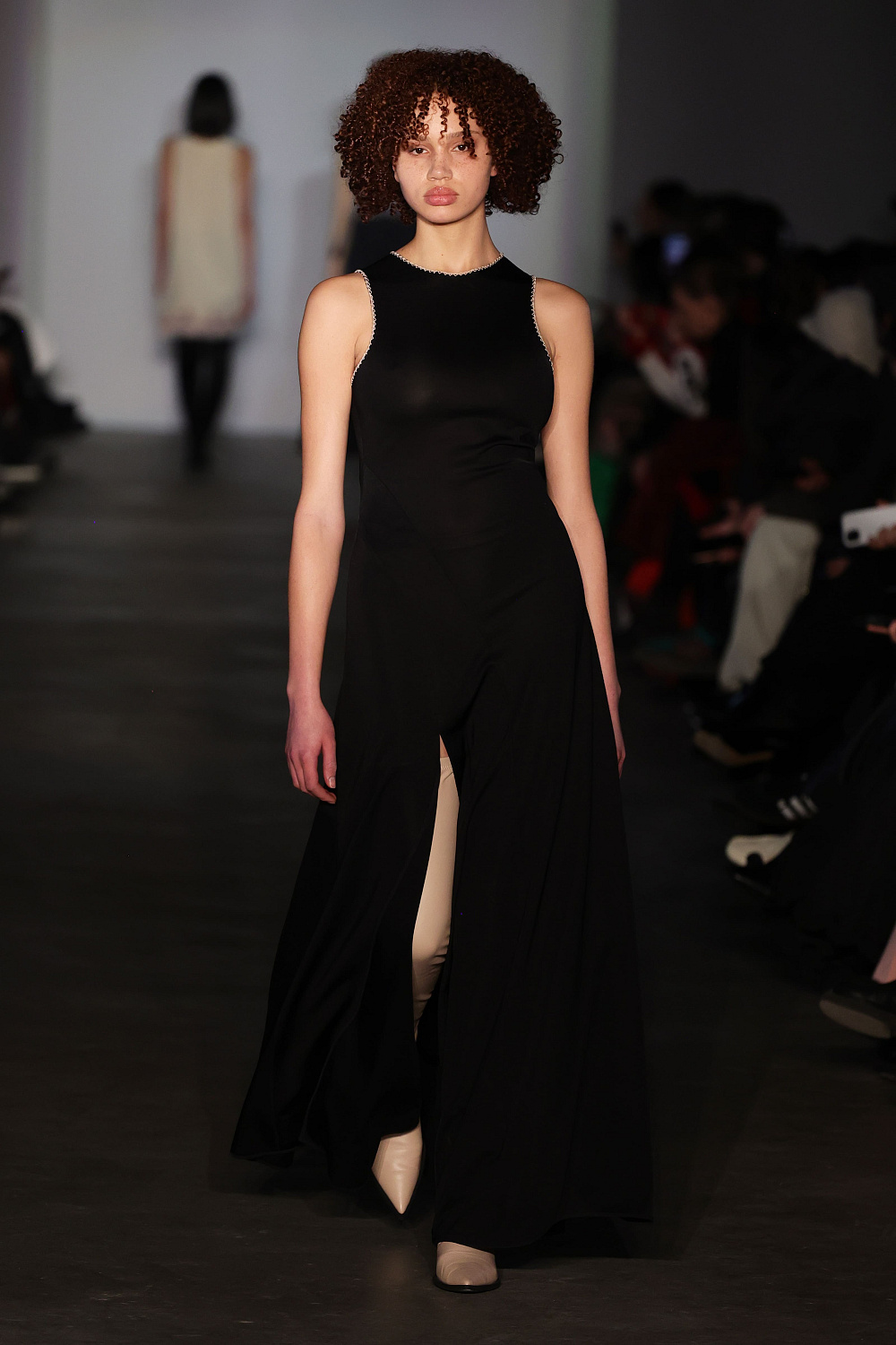 Чуттєвість мережива — один із головних акцентів. Воно надає делікатності фірмовим мінімалістичним фасонам BOBKOVA, від довгих сліпдресів з мереживними краями в стилі 90-х та бра, які вдягаються поверх сорочок, до мінісуконь і спідниць А-силуету в стилі печворк, поєднаних зі шкіряними черевиками-панчохами у стилі Франсуази Арді епохи 60-х років.