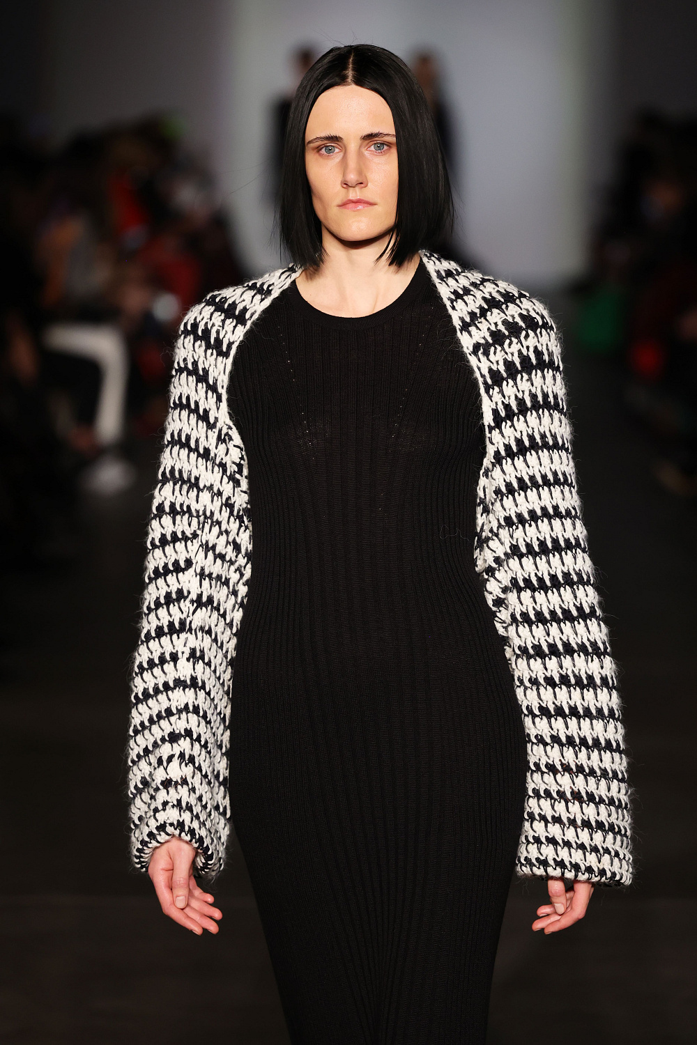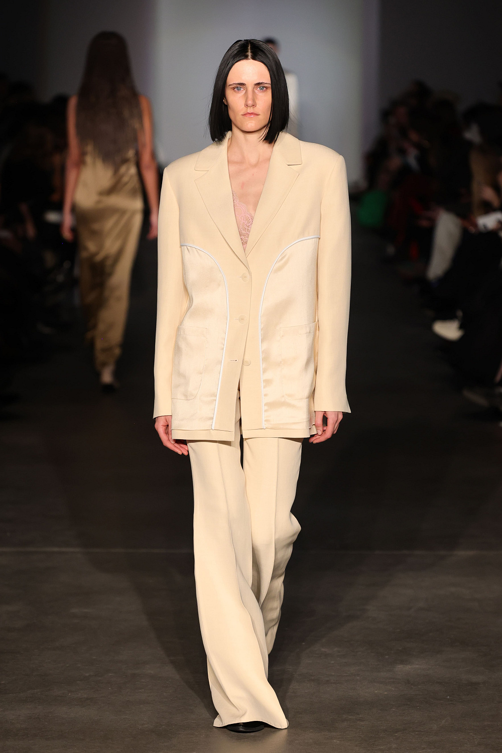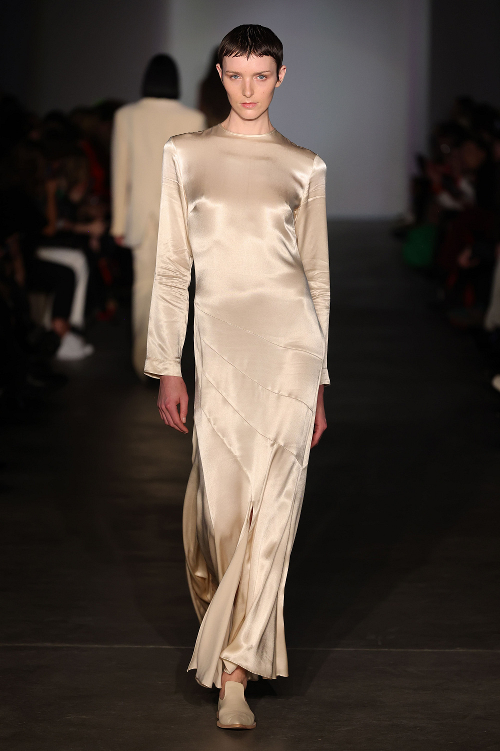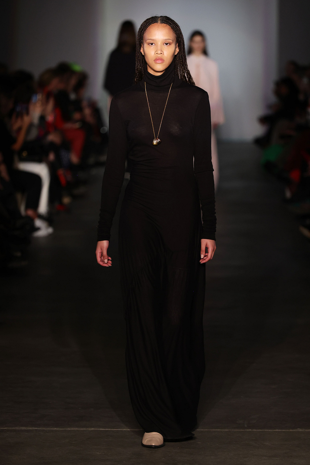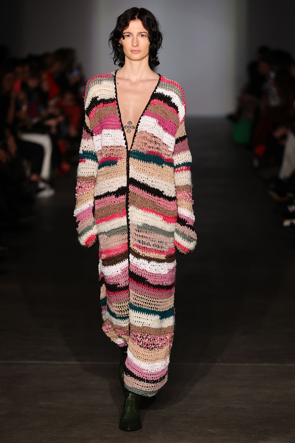 Чуттєвість мережива — один із головних акцентів. Воно надає делікатності фірмовим мінімалістичним фасонам BOBKOVA, від довгих сліпдресів з мереживними краями в стилі 90-х та бра, які вдягаються поверх сорочок, до мінісуконь і спідниць А-силуету в стилі печворк, поєднаних зі шкіряними черевиками-панчохами у стилі Франсуази Арді епохи 60-х років.