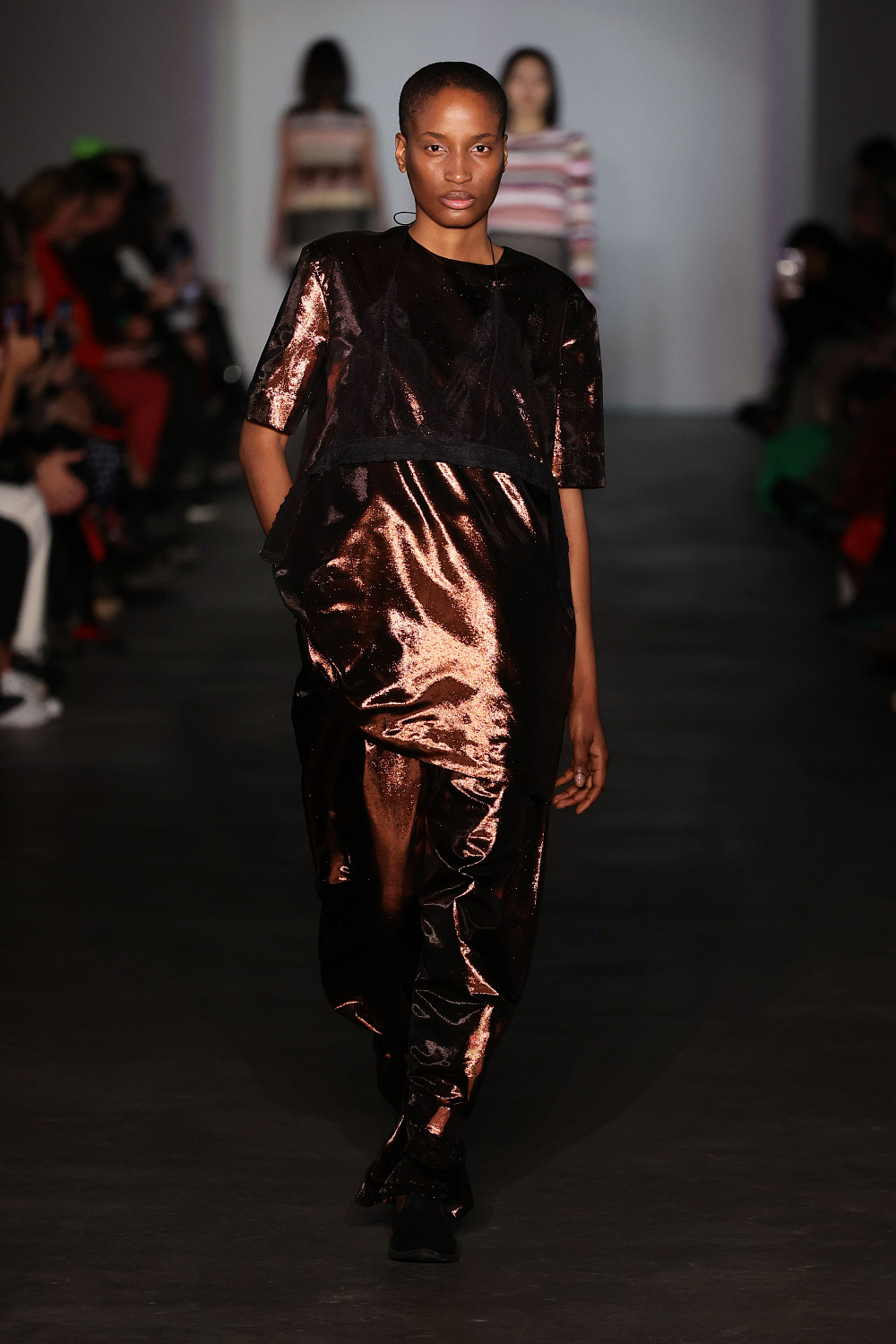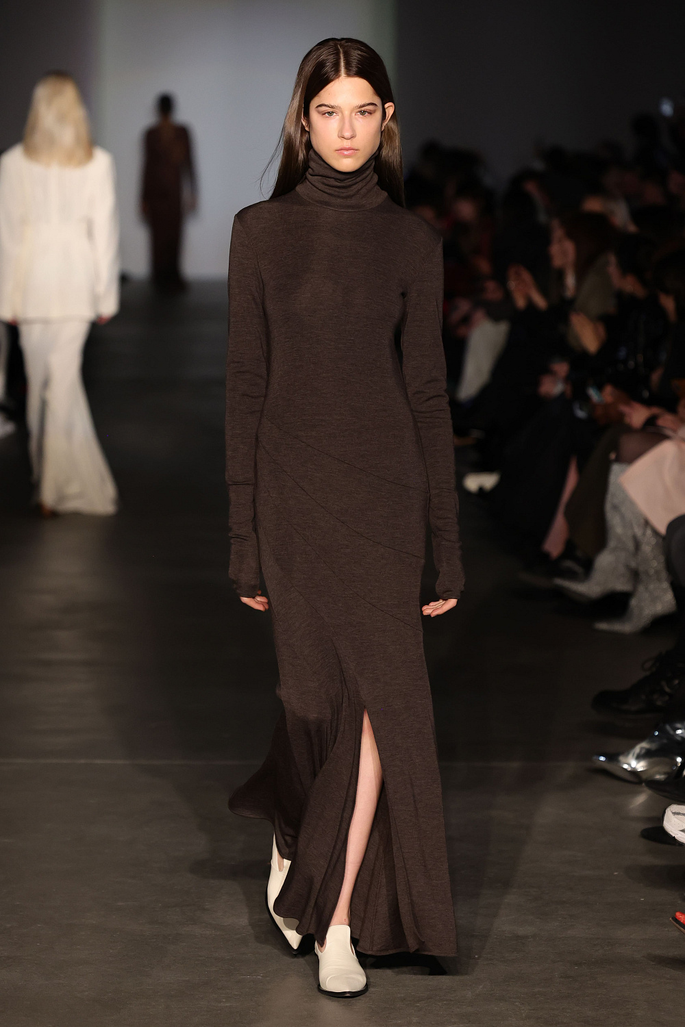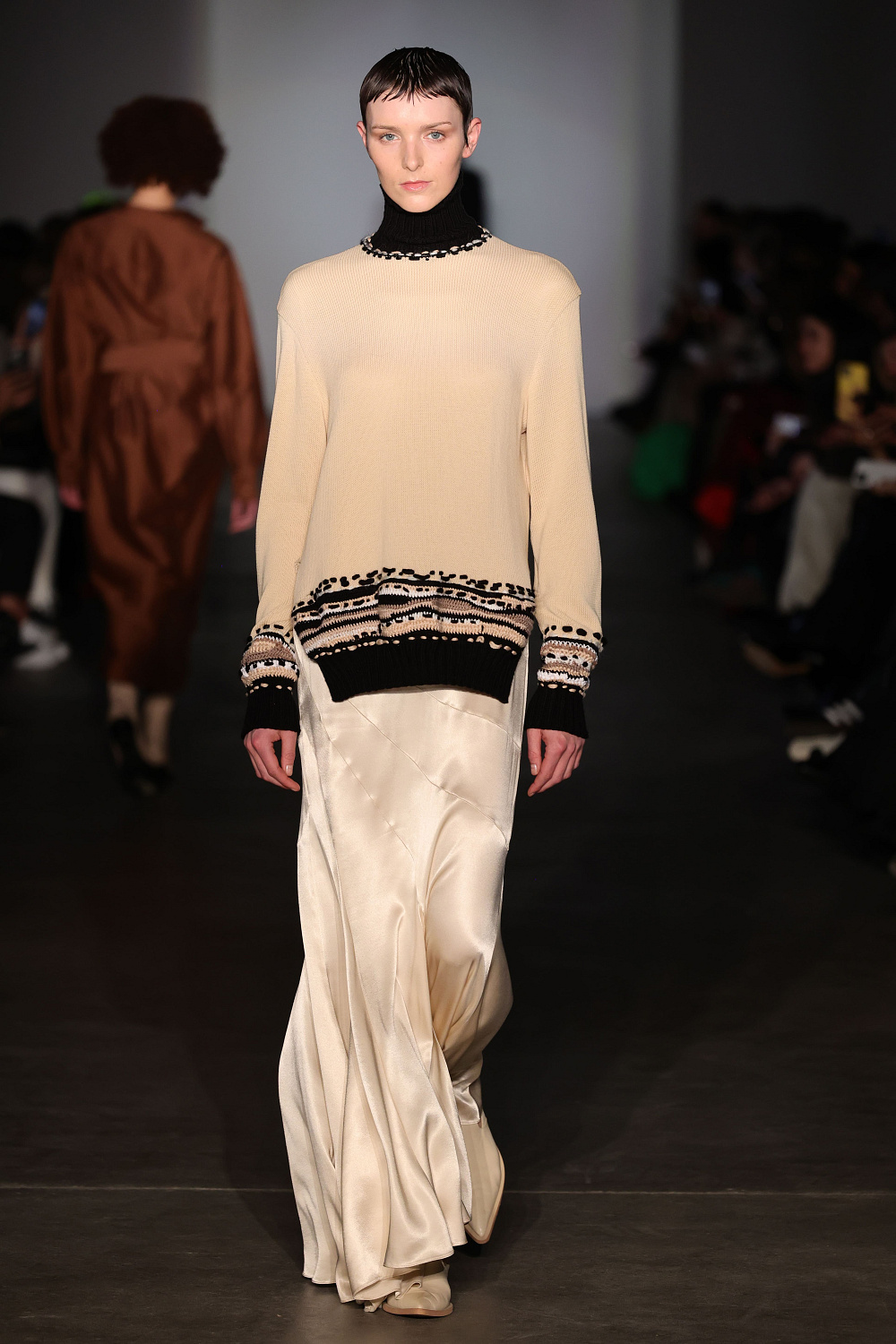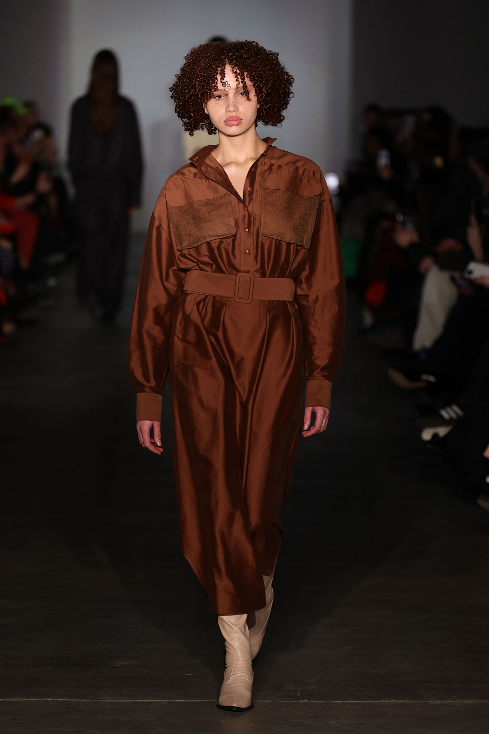 Чуттєвість мережива — один із головних акцентів. Воно надає делікатності фірмовим мінімалістичним фасонам BOBKOVA, від довгих сліпдресів з мереживними краями в стилі 90-х та бра, які вдягаються поверх сорочок, до мінісуконь і спідниць А-силуету в стилі печворк, поєднаних зі шкіряними черевиками-панчохами у стилі Франсуази Арді епохи 60-х років.