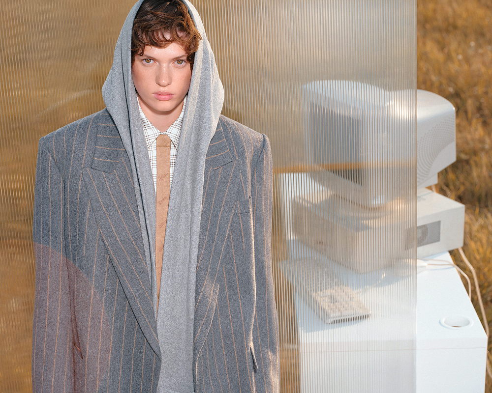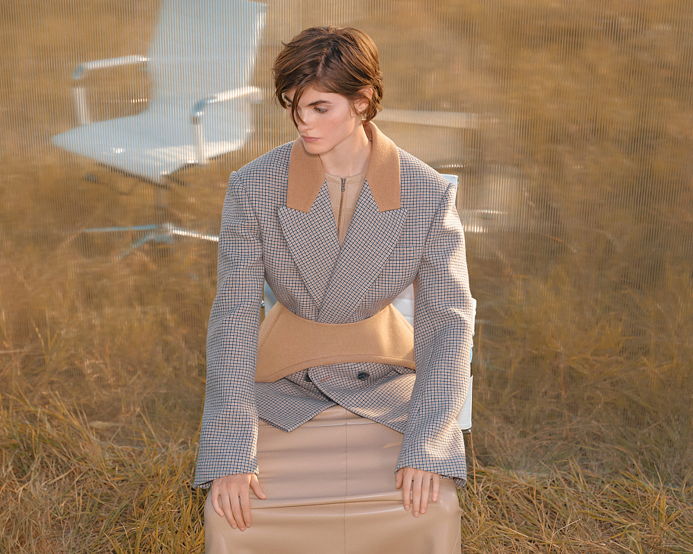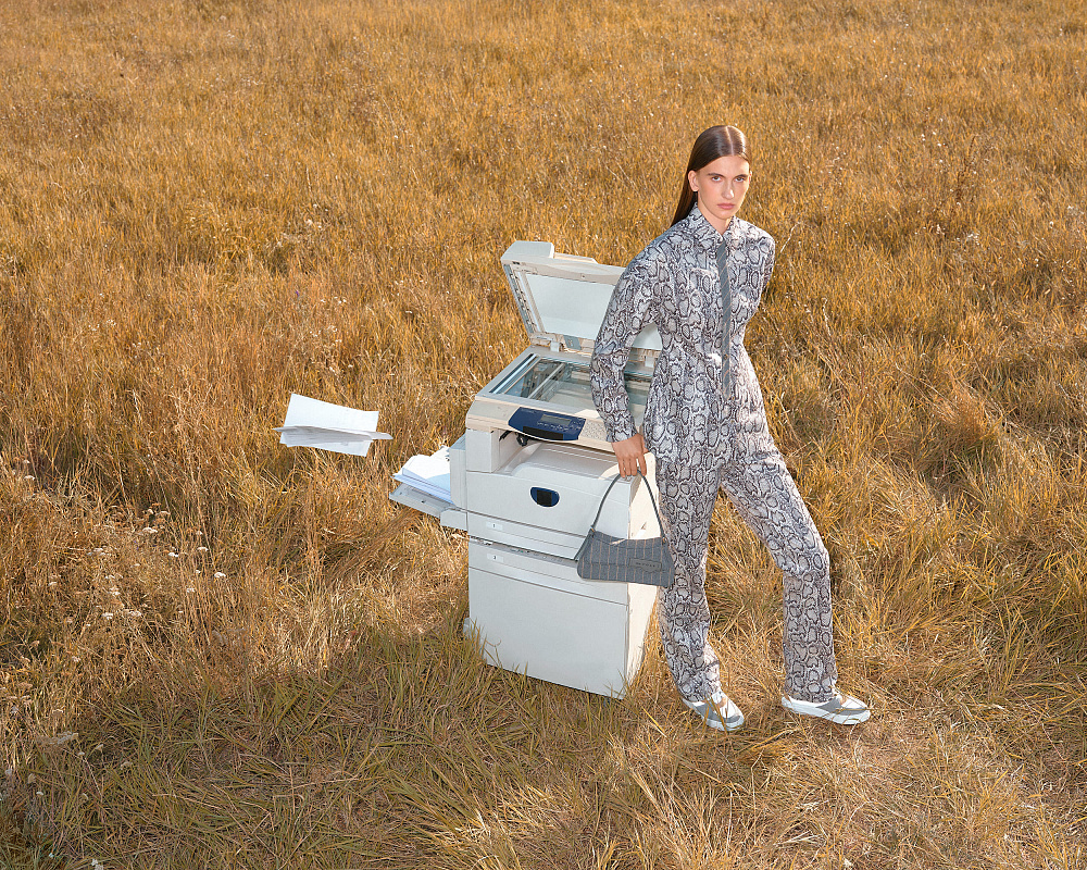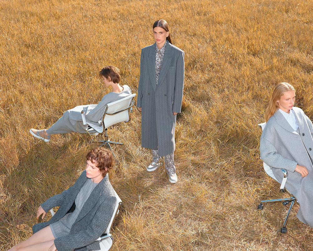 «Йдеться про таке необхідне заземлення, сповільнення, про роботу над собою та зі своїм внутрішнім світом. Все це вилилося в мʼякі фактури, лінії та силуети, приємні тканини та спокійну колірну гаму. В цій зйомці була створена концепція ідеального світу, де існує баланс між роботою та тим, що ти можеш бути ближче до природи й до себе справжньої. Ми створили такий образ офісу в полі як символ перехрестя зовнішнього та внутрішнього світів людини».