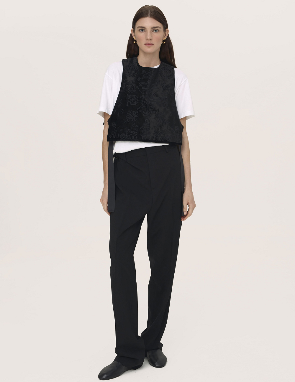 Оксамитова вишита безрукавка — елемент оригінального нагрудного одягу. Вишивка лімітованих фартухів натхнена сюжетами косівських кахель та чернецьким рушником із Черкащини. Естетика цих експонатів стала основою і для візерунків на хустках із козирком, і для принтів на шовкових хустках. Вишиті орнаменти GUNIA Project — це альтернативне продовження традиції в сучасній уяві. Узори вишитих сорочок — це варіації та доповнення різноманітних елементів, зібраних із керамічних кахлів Чернігівщини та буковинської мальованої скрині 1909 року.