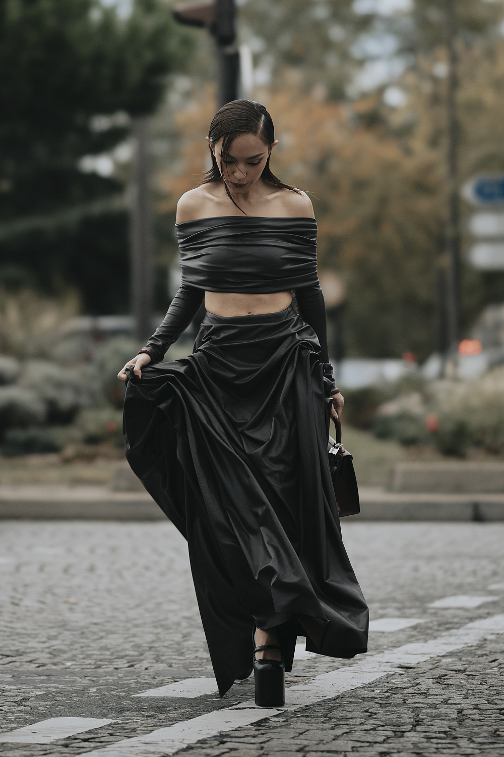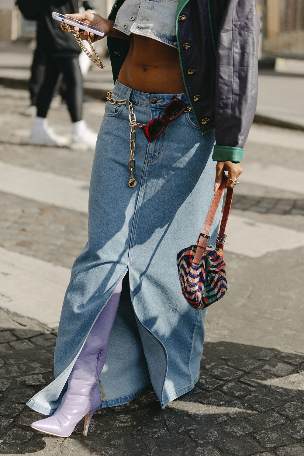 Цього сезону спідниці максі актуальні у всіх можливих проявах: з деніму, шкіри та сатину, обтислі та «тюльпани», виконані в естетиці mermaidcore та balletcore.