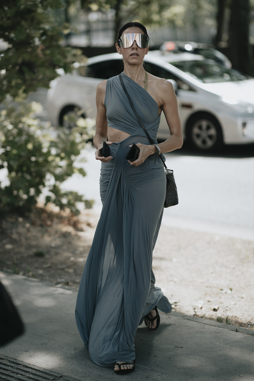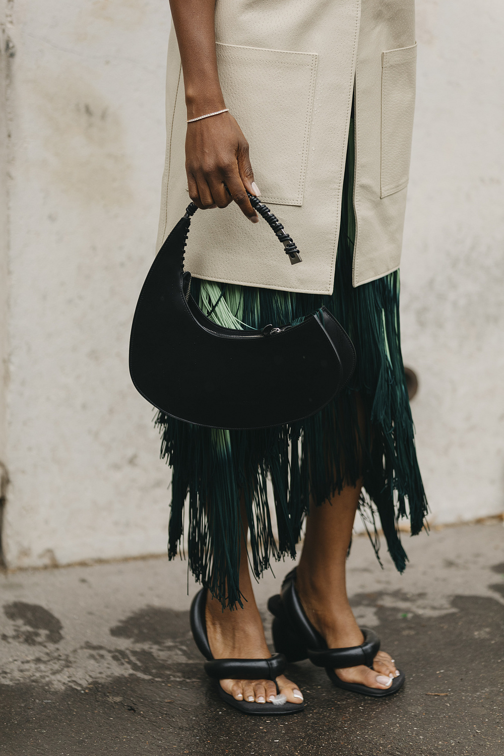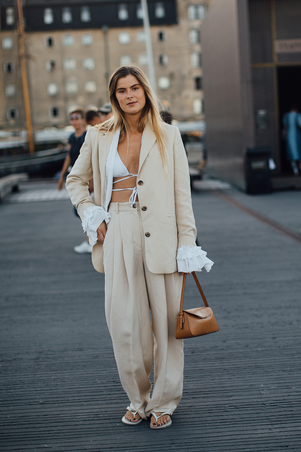 Першими з подіумів тренд перетягли зірки streetstyle, тож на їхньому прикладі ми побачили, як працюють в’єтнамки з іншими трендами: сукнями максі, прозорими тканинами, брючними костюмами, фактурними спідницями тощо. Дехто ж із фешіоніста виявився ще більш сміливим і обрав вечірнє вбрання.