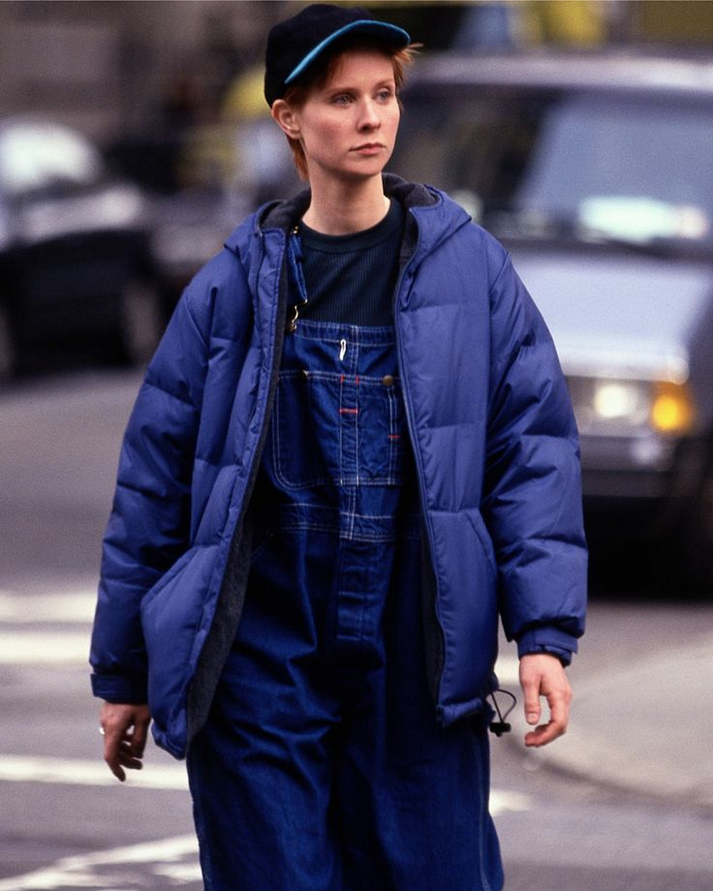 Розрізняти стиль чотирьох подруг можемо за верхнім одягом, який вони обирають для прохолодної погоди. Як уже знаємо, Керрі неможливо уявити без її шуб, Шарлотта однозначно асоціюється з тренчами, тоді ж як Міранда, думаємо, у сьогоденні точно обрала б стильний пуховик. В одному з епізодів дівчина з’явилася на екрані в джинсовому комбінезоні, який доповнював пуховик такого ж синього відтінку.