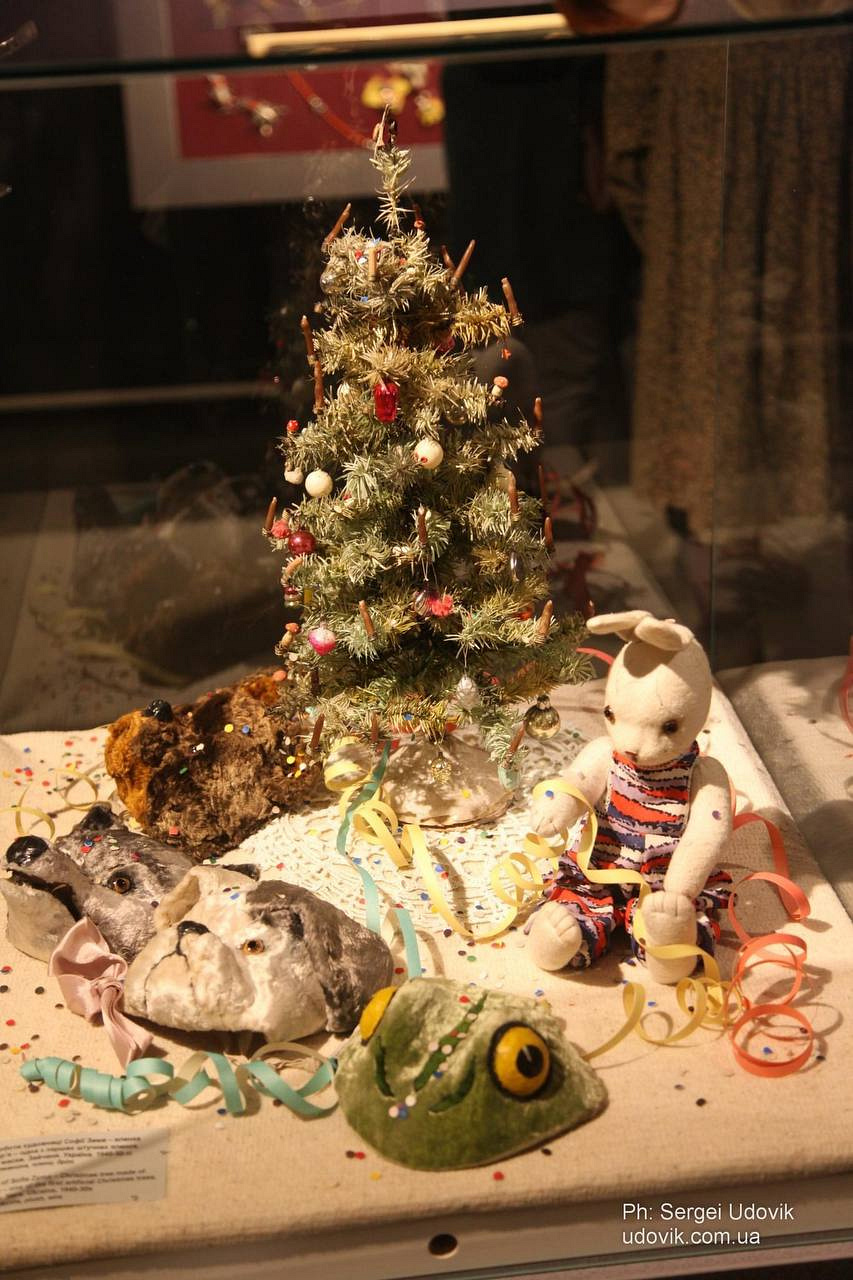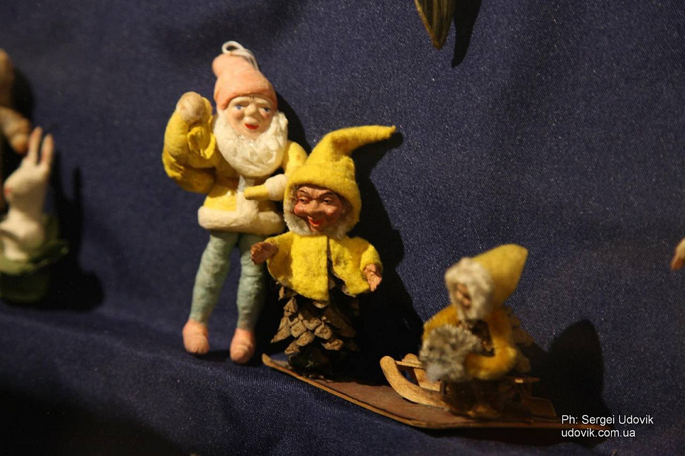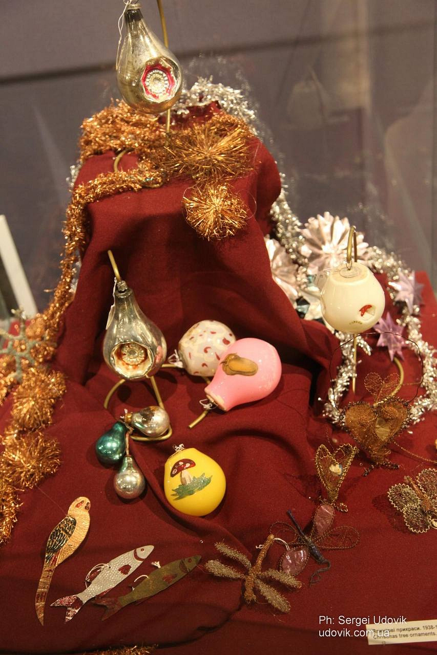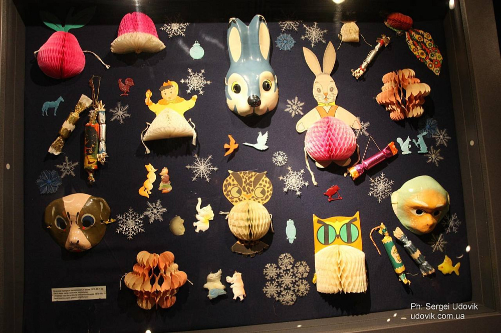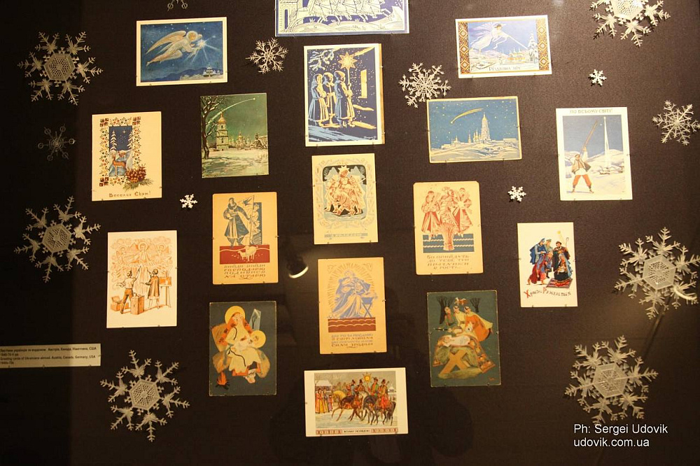 Поряд з ялинковими прикрасами представлені раритетні різдвяно-новорічні листівки початку ХХ ст., вітальні новорічні листівки 1950-60-х років та листівки української діаспори 1940-70-х років.