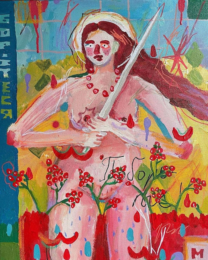 Займатися художніми практиками Ірина почала не так давно, проте вже встигла здобути самість, неповторність і характерну колористику у своїх творах. Кожна робота — це маніфест, голос, заклик до дій. Поважаю, ціную і вам раджу.