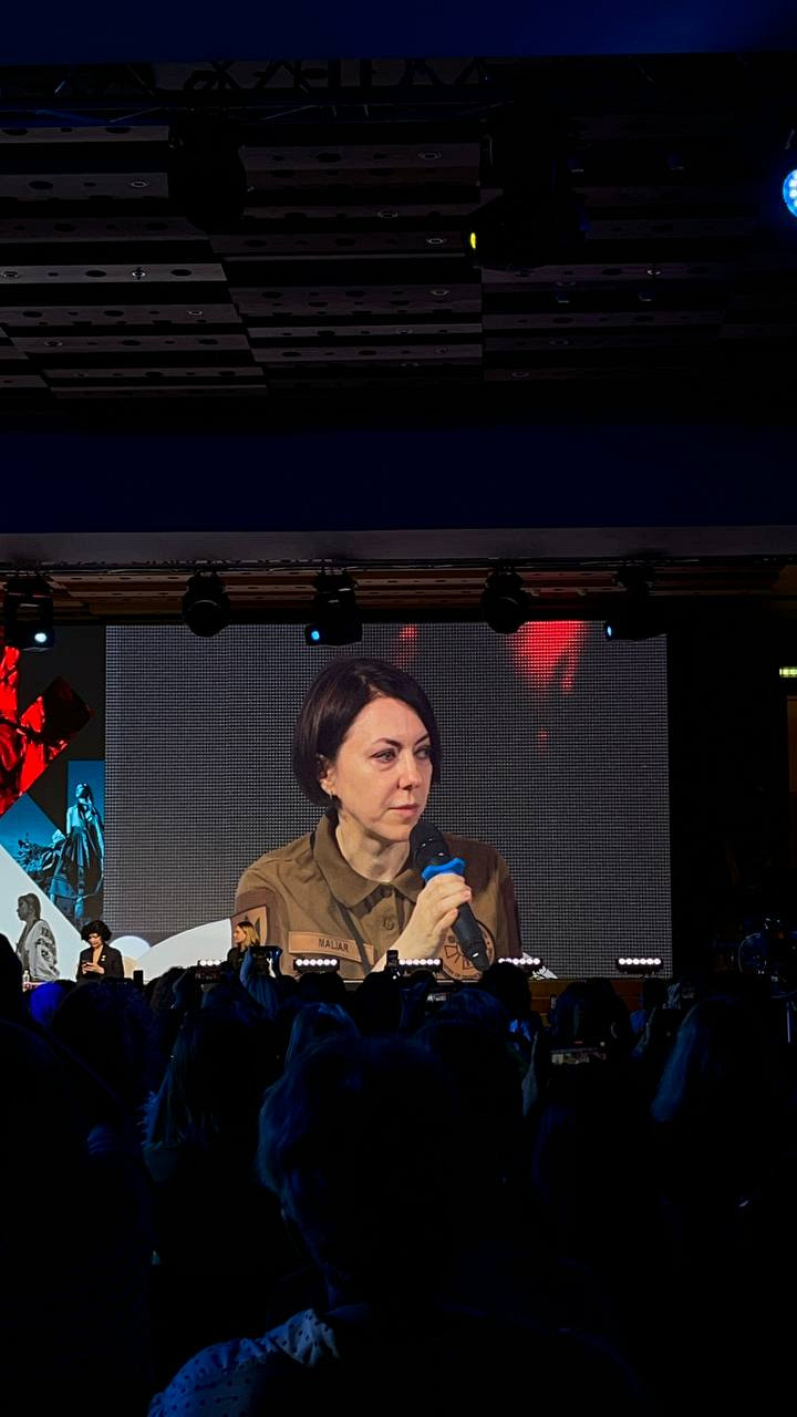 «Війна не обирала, чоловік чи жінка. Я пишаюсь українськими жінками у Збройних Силах. Нагадаю, наразі це 42 тисячі жінок-військовослужбовиць, разом із цивільними працівницями це близько 60 тисяч. З них понад 5 тисяч жінок сьогодні на передовій. Це ті, хто самі виявили бажання йти на фронт. Це надсильні жінки, вони виконують важку чоловічу роботу з надмірними навантаженнями. Кожна з них для мене приклад», — говорить Ганна Маляр.