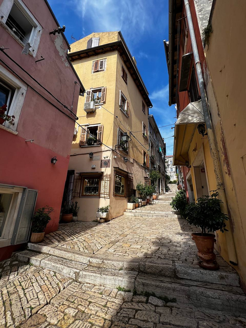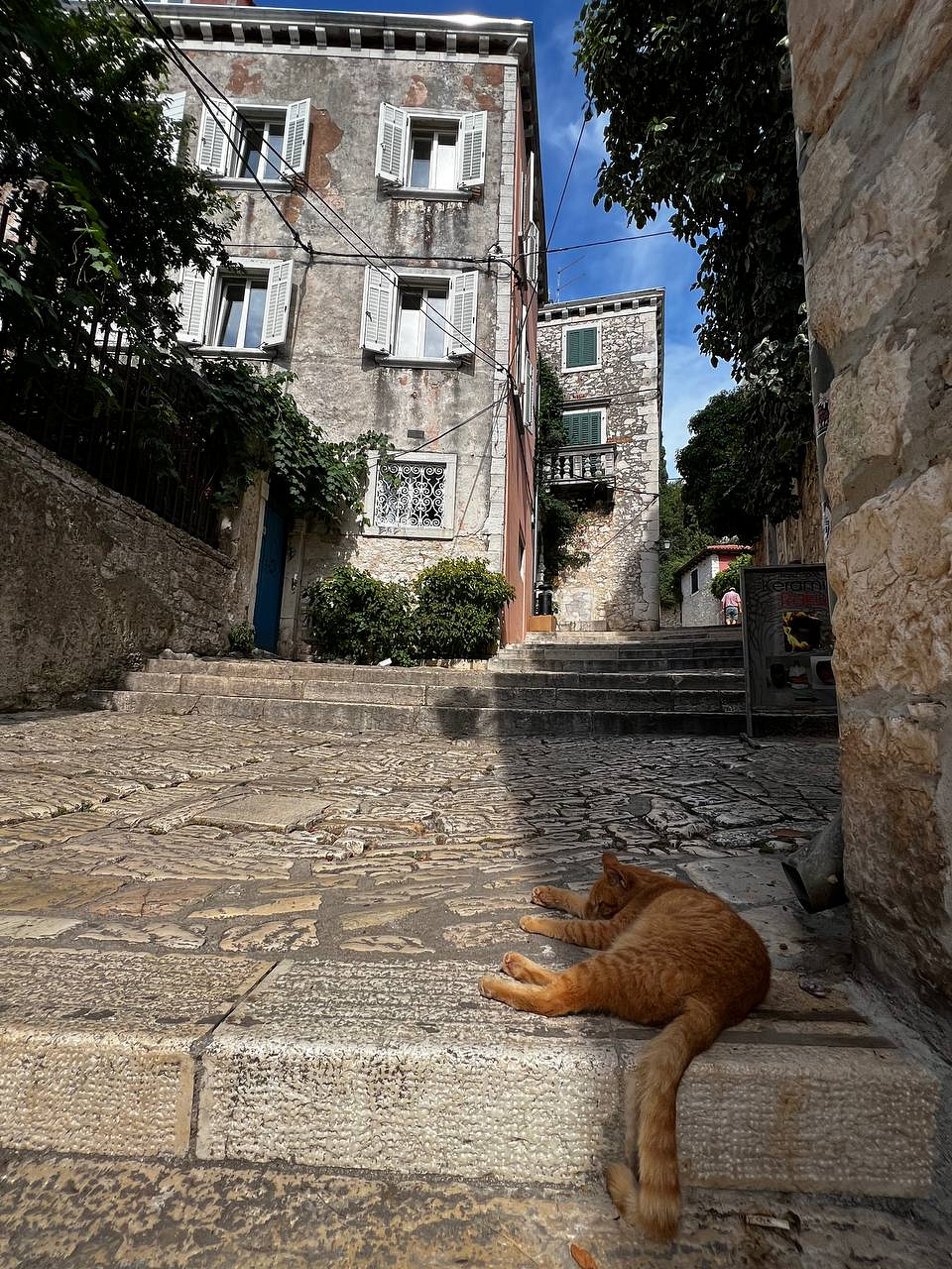 Серед особливостей міста, які мене здивували: Ровінь — дуже animal friendly курорт. Навіть при бронюванні апартаментів указано: «проживати з тваринами дозволено, за проживання з дітьми необхідно доплатити». І туристи з радістю користуються цією опцією — приїжджають сюди з собаками всіх можливих порід: від мопсів до доберманів.