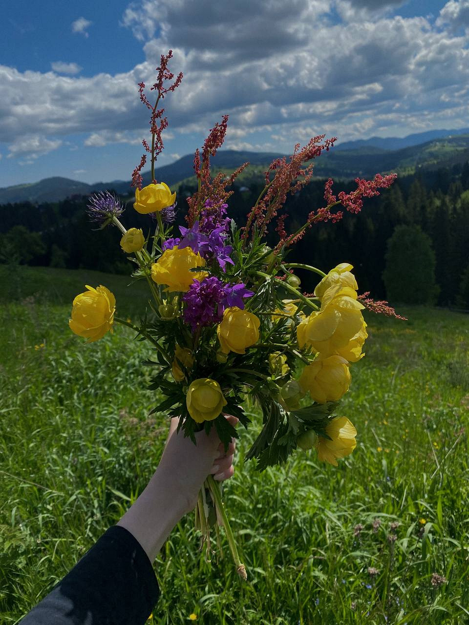 В якийсь момент мені здалося, що я проживаю сцену з романтичного фільму, і ця сцена виглядала так: я сиділа на усипаній пахучим чебрецем галявині, спираючись на нареченого, було чутно лише, як на полонині дзвенять пастуші дзвіночки, що носять місцеві корівки. Ми дивилися на далеченько розкидані одна від одної хатки та мріяли, як одного разу підкоримо Говерлу.