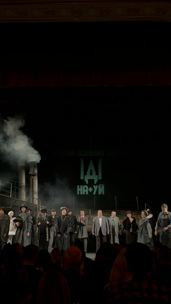 А найулюбленіший момент — вихід акторів на уклін. Зала не відпускала акторів дуже довго. Неймовірна вистава, мій захват не передати словами. Дуже багато посилань та паралелей, думок та нових сенсів. Раджу сходити за першої ж нагоди.